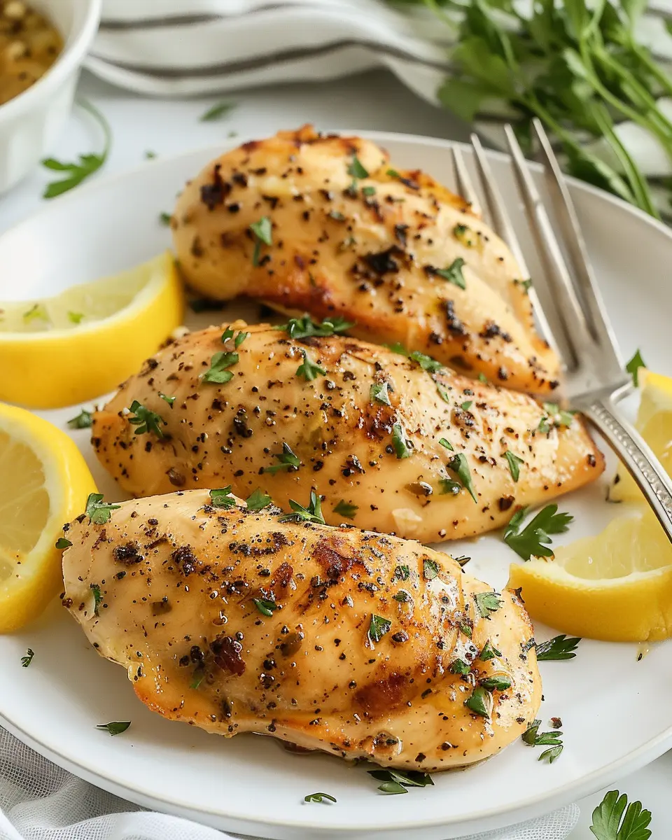 - Ingredients: 2 chicken breasts, juice of 1 lemon, 2 tablespoons honey, 4 cloves minced garlic, salt, and pepper to taste.