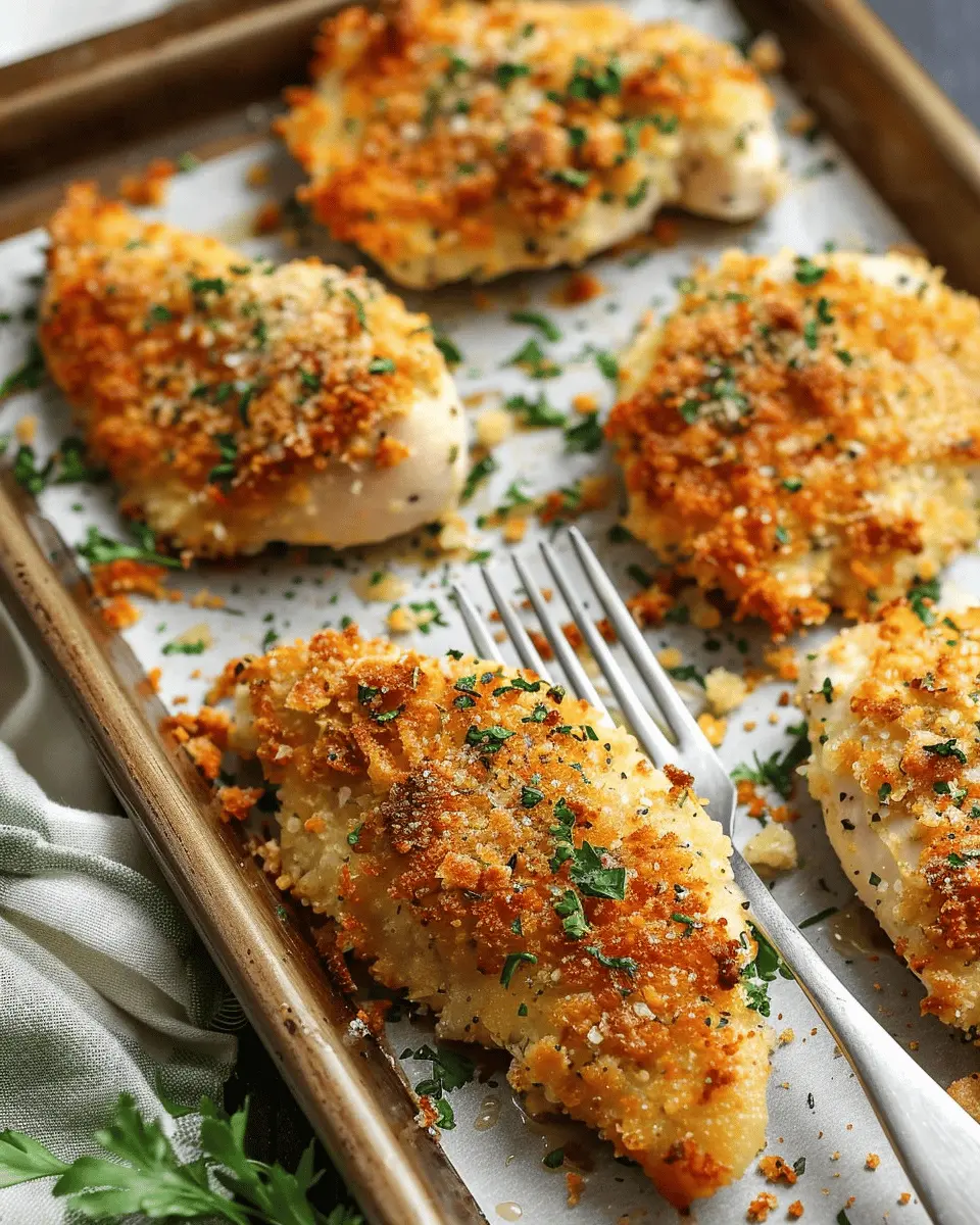 A deliciously crunchy Baked Parmesan Crusted Chicken, perfect for a family dinner.