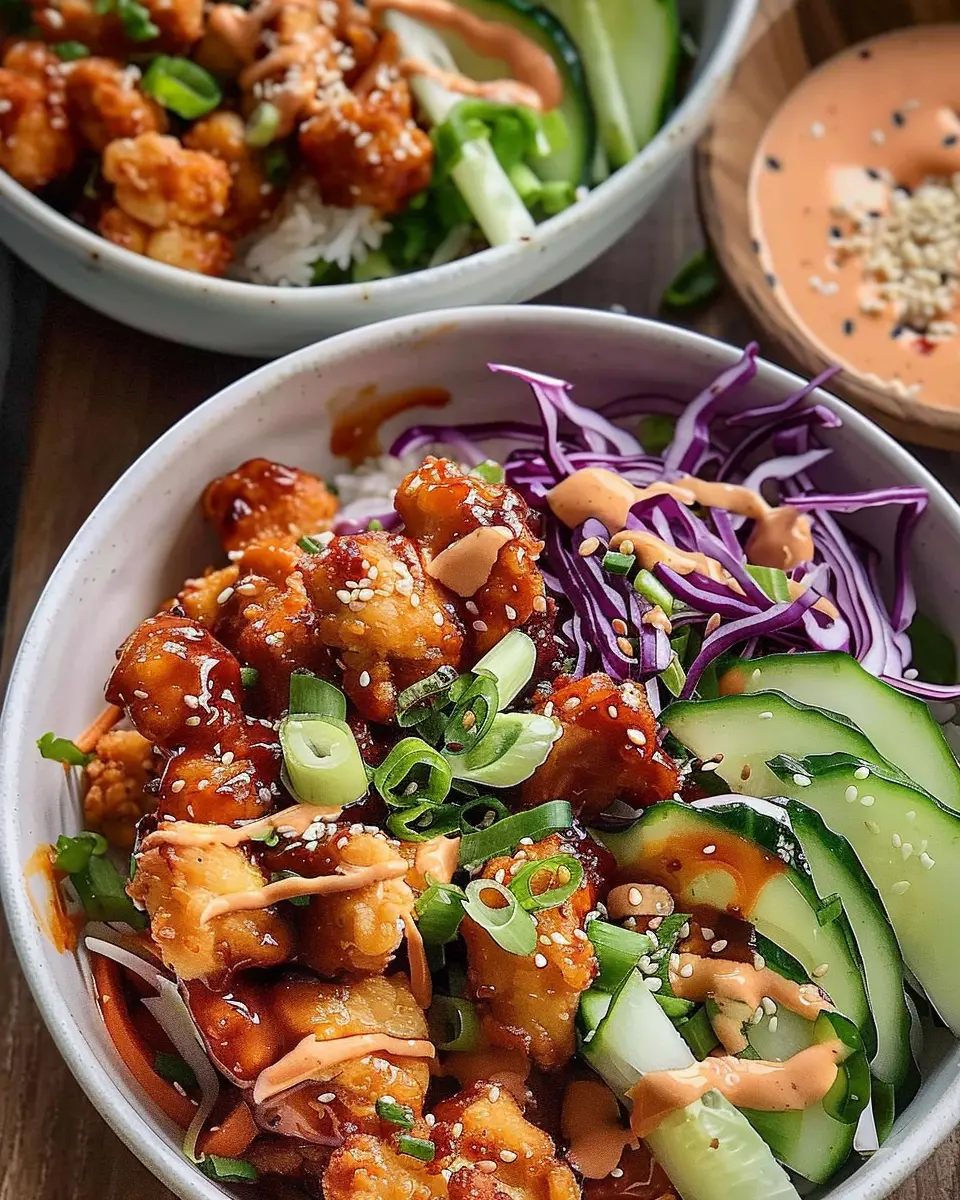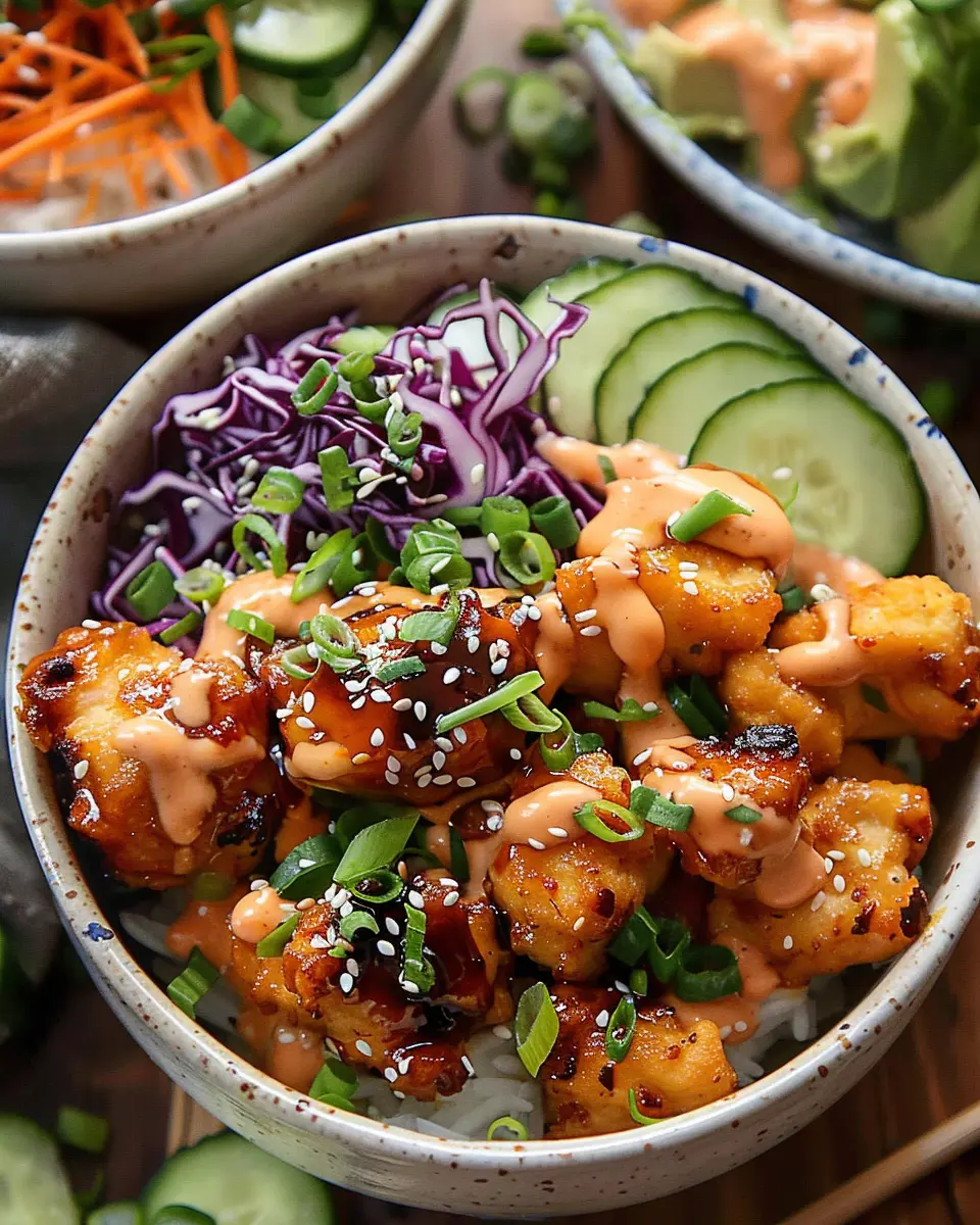 - Tofu: Replace chicken with seasoned and fried tofu for a protein-packed option. The crispy texture complements the bowl perfectly.