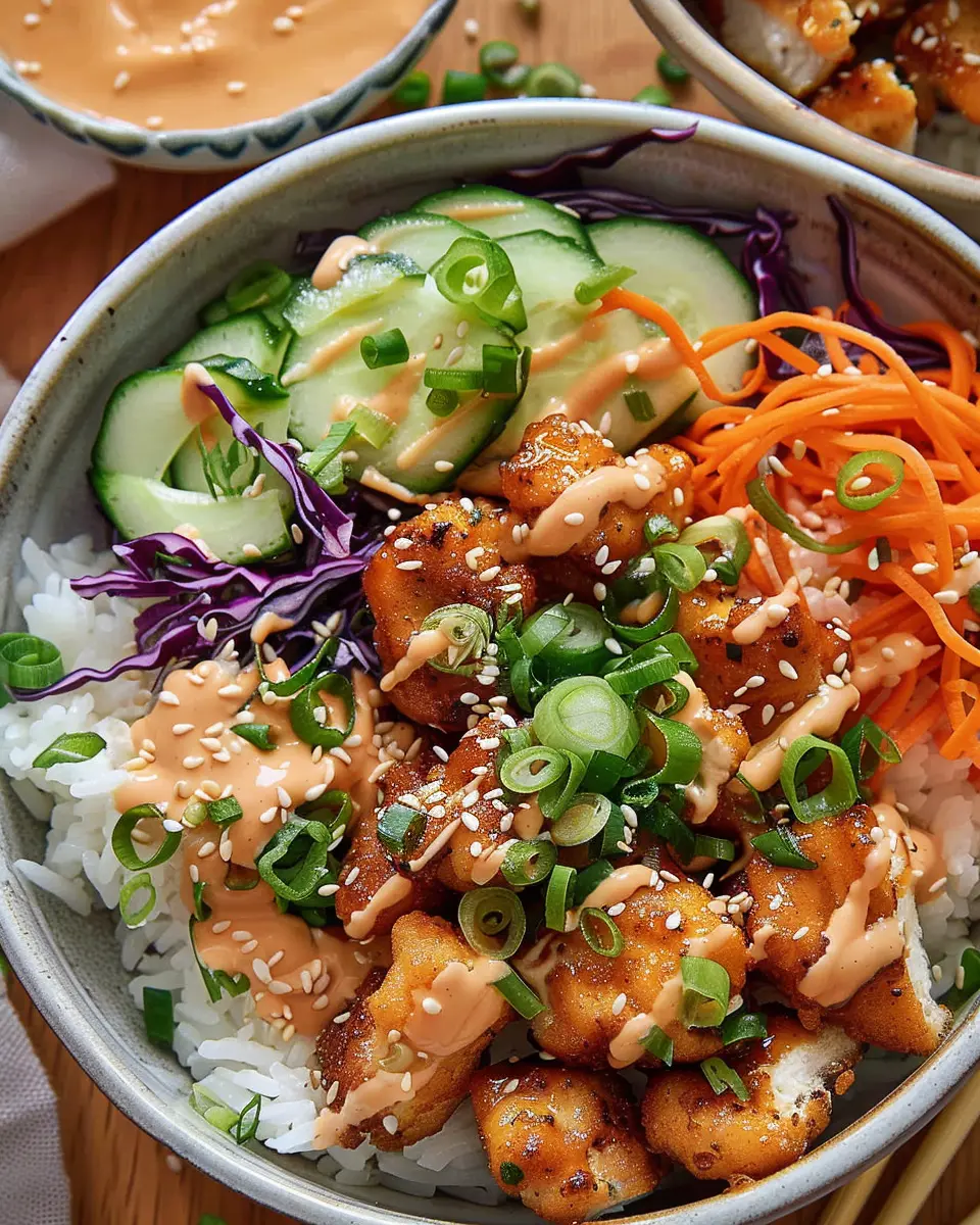 - Tofu: Replace chicken with seasoned and fried tofu for a protein-packed option. The crispy texture complements the bowl perfectly.