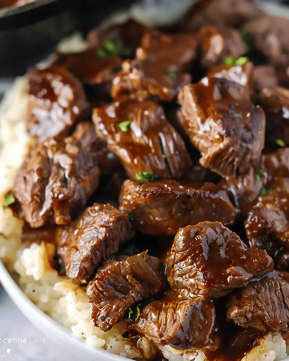 Are you a fan of creamy sauces? Then this variation is perfect for you. Creamy garlic beef tips blend tender beef with a velvety garlic sauce that pairs wonderfully with rice or pasta.