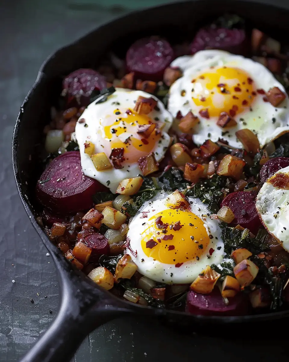 Let’s face it; after a long day at work, the last thing you want to do is spend hours in the kitchen. Beet hash with eggs can be prepared in under 30 minutes. Just imagine coming home, tossing some beets, potatoes, and eggs in a skillet, and savoring a colorful, hearty meal that’s both filling and nutritious. It’s that easy!