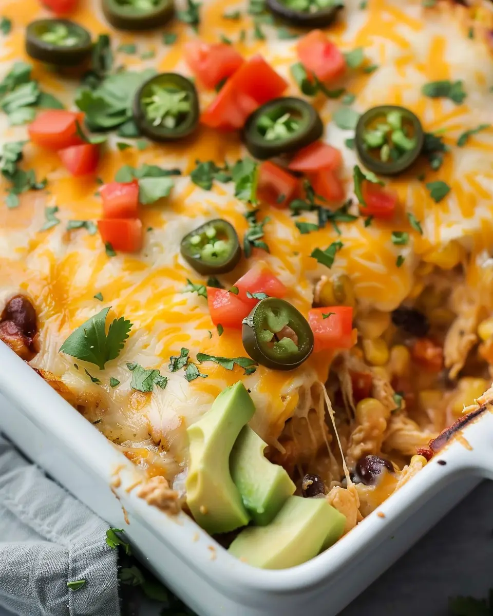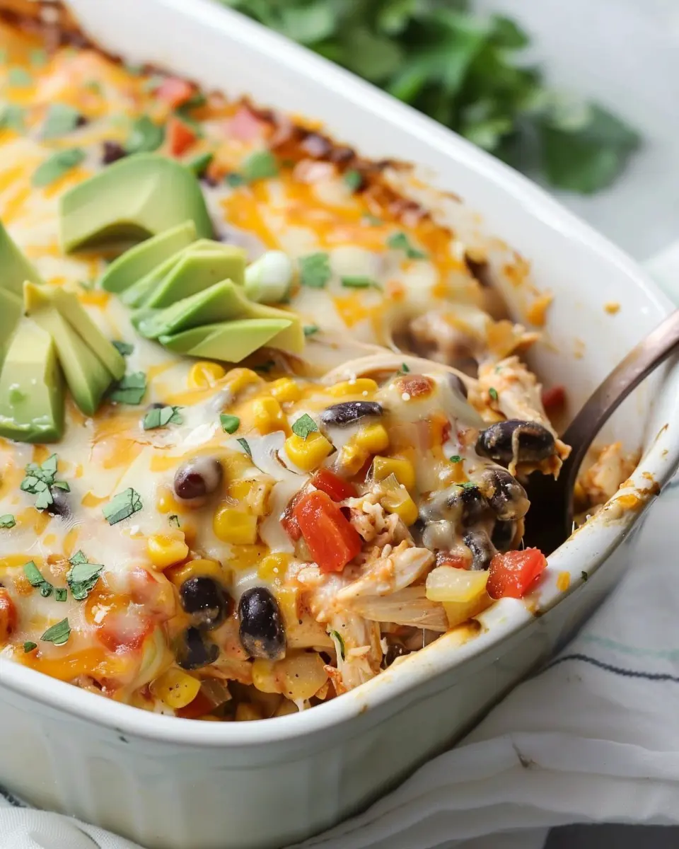 After baking, let your best southwest chicken casserole cool for about 5-10 minutes. This helps the layers set, making it easier to serve. When you’re ready to dish out, grab a spatula and cut yourself a generous portion.