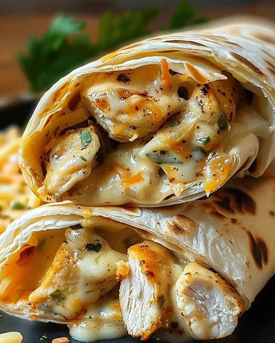 Indulge in the creamy, cheesy goodness of these Cheesy Garlic Chicken Wraps, perfect for a quick and satisfying meal any night of the week.