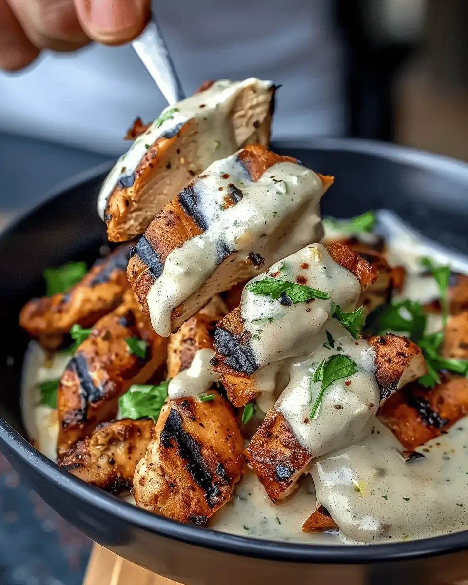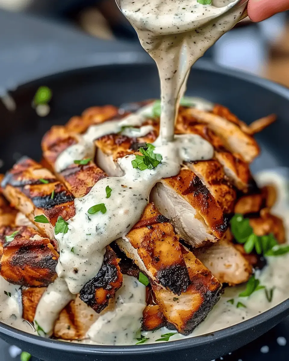 - Drizzle the creamy garlic sauce over the chicken.