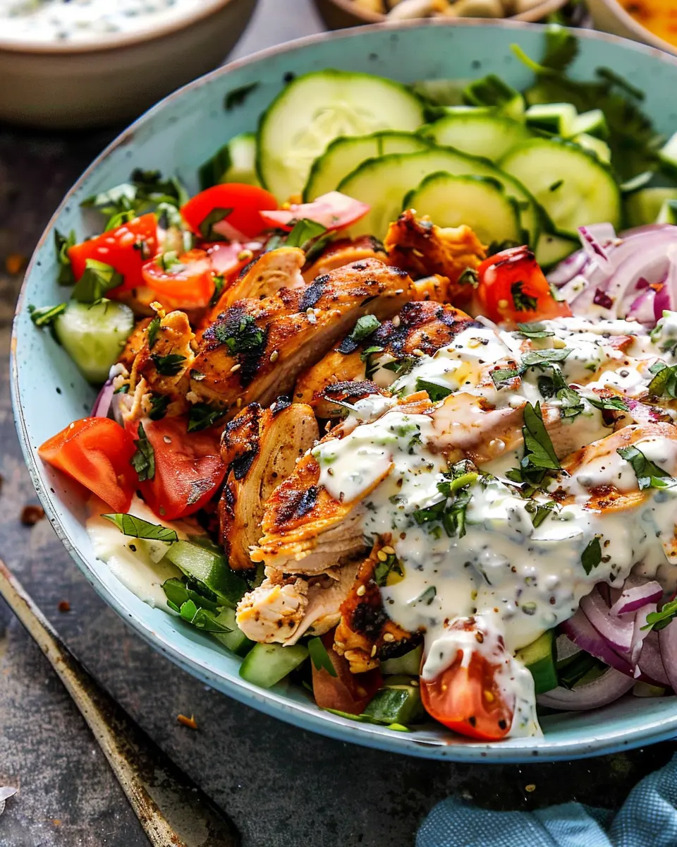 There you have it—a beautiful and mouthwatering Chicken Tzatziki Bowl! Not only is it visually appealing, but it’s also a healthy choice packed with protein and refreshing flavors. Perfect for lunch at work or a dinner that meets the highest standards. Enjoy your creation and share it with friends—watch their eyes light up with delight!