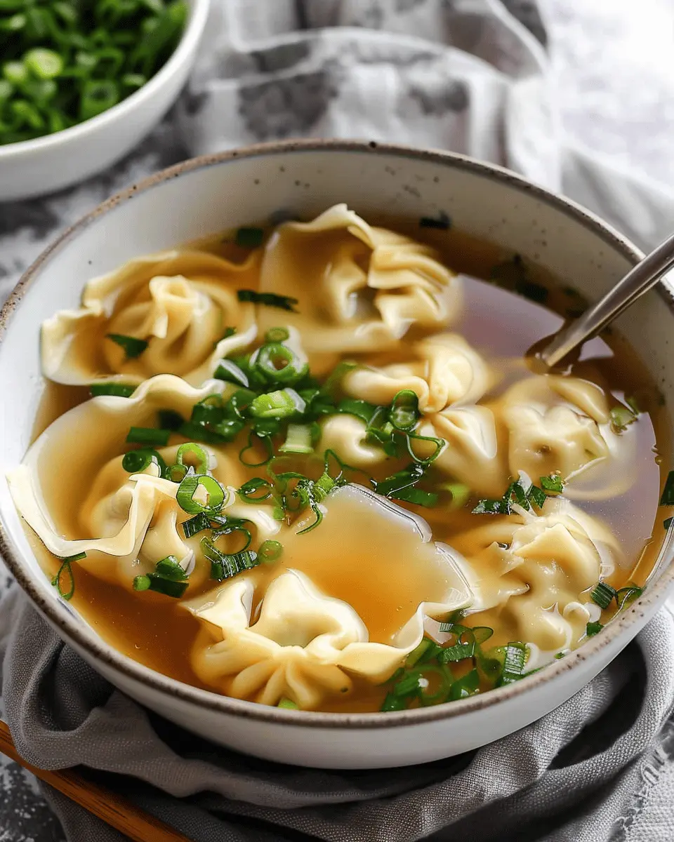 Storing leftover chicken wonton soup is easy! Allow the soup to cool completely, then transfer it to an airtight container. It can stay fresh in the refrigerator for up to 3 days. If you think you’ll have leftovers for longer, consider freezing the soup (without the wontons). This way, you can enjoy a warm bowl of chicken wonton soup anytime! Just reheat it on the stovetop or in the microwave when you’re ready to dig in.