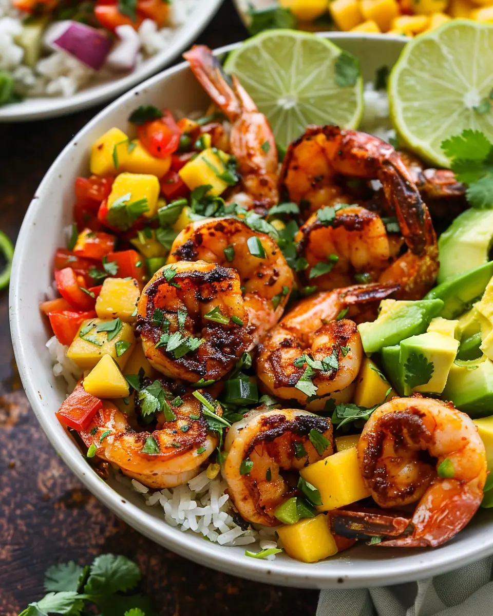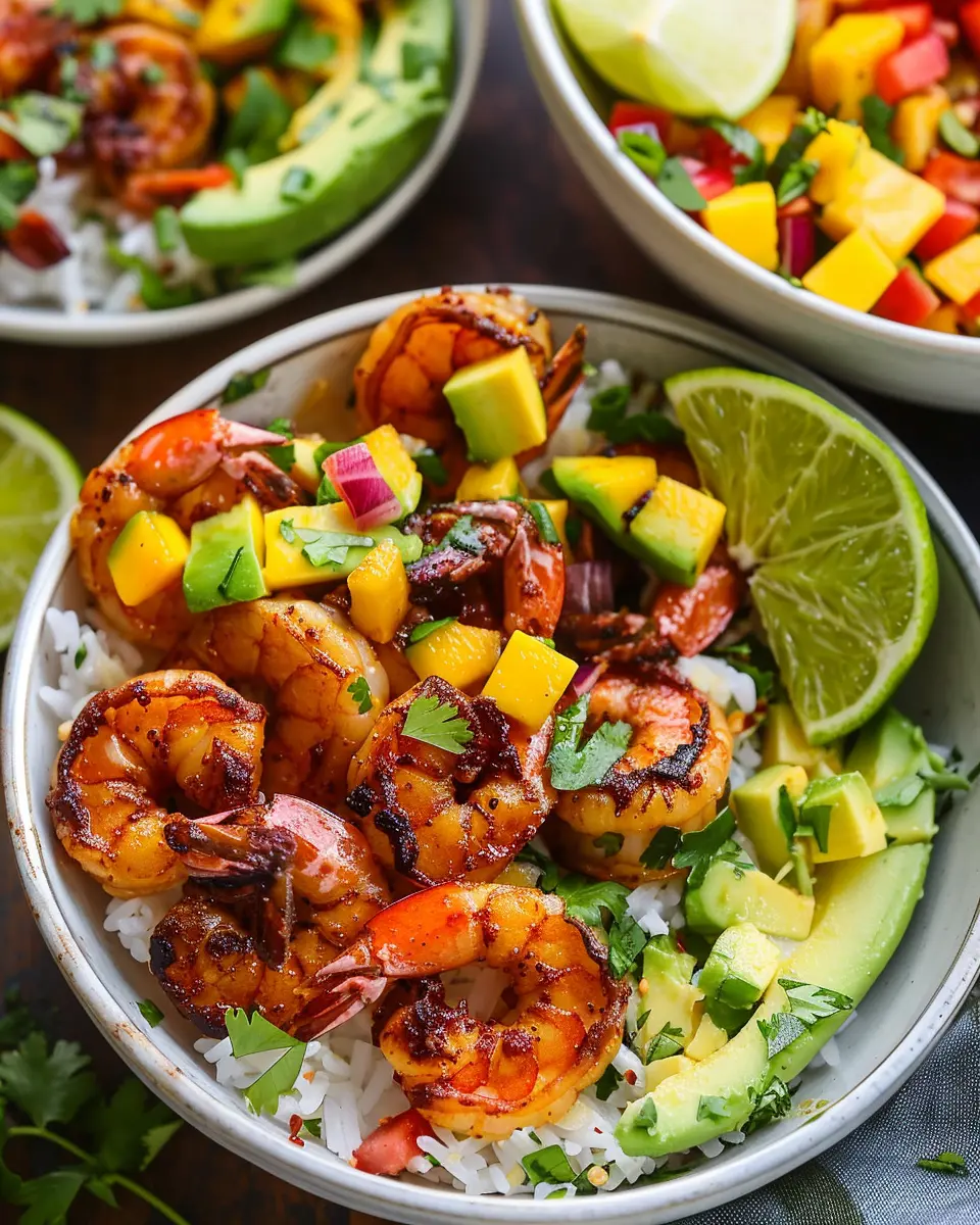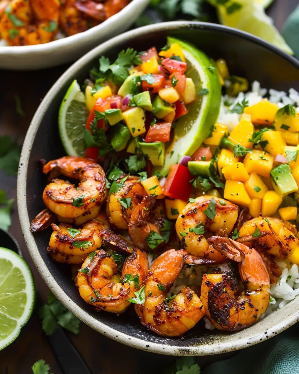 Keywords: Chili Lime Shrimp, Mango-Avocado Salsa, shrimp bowls