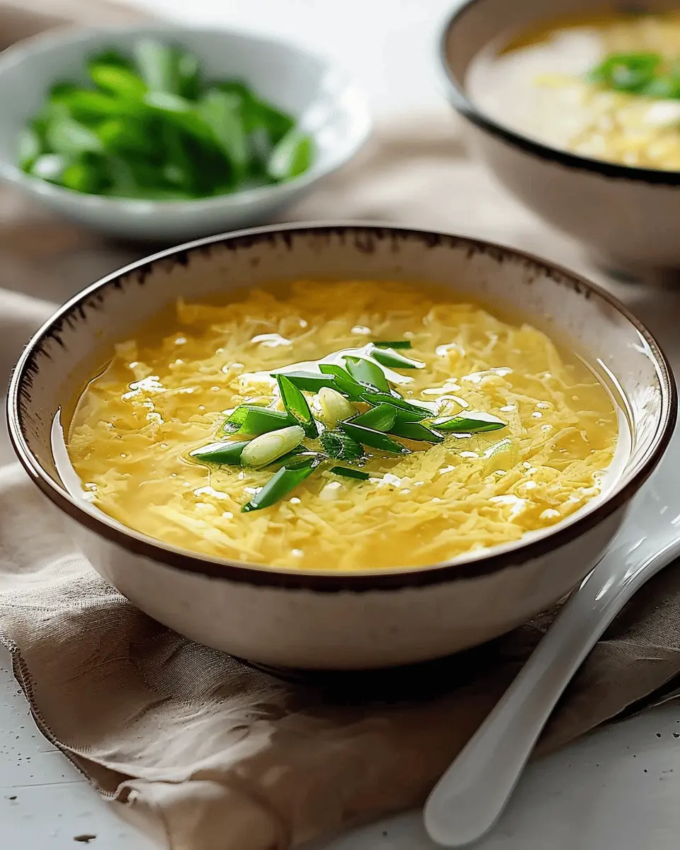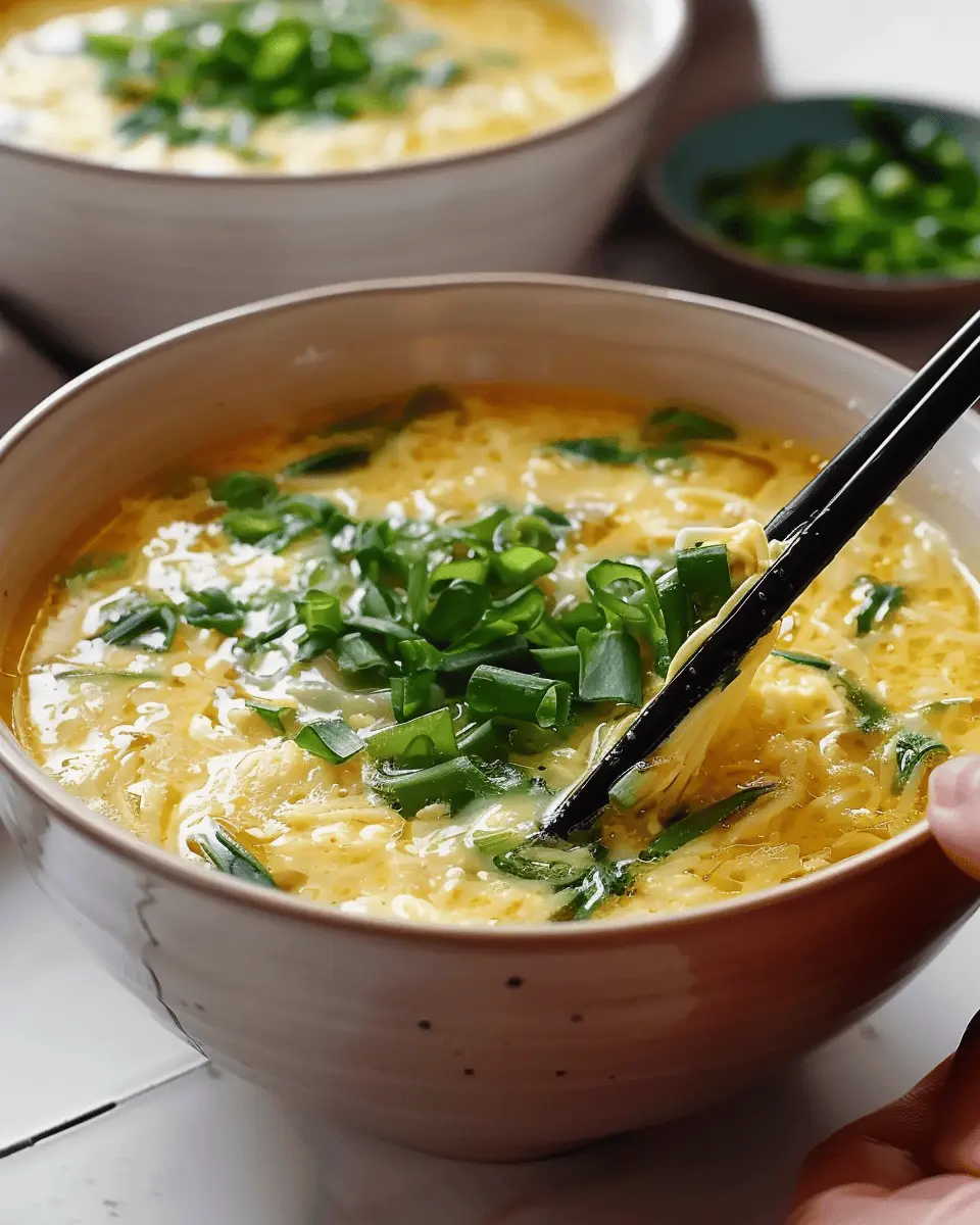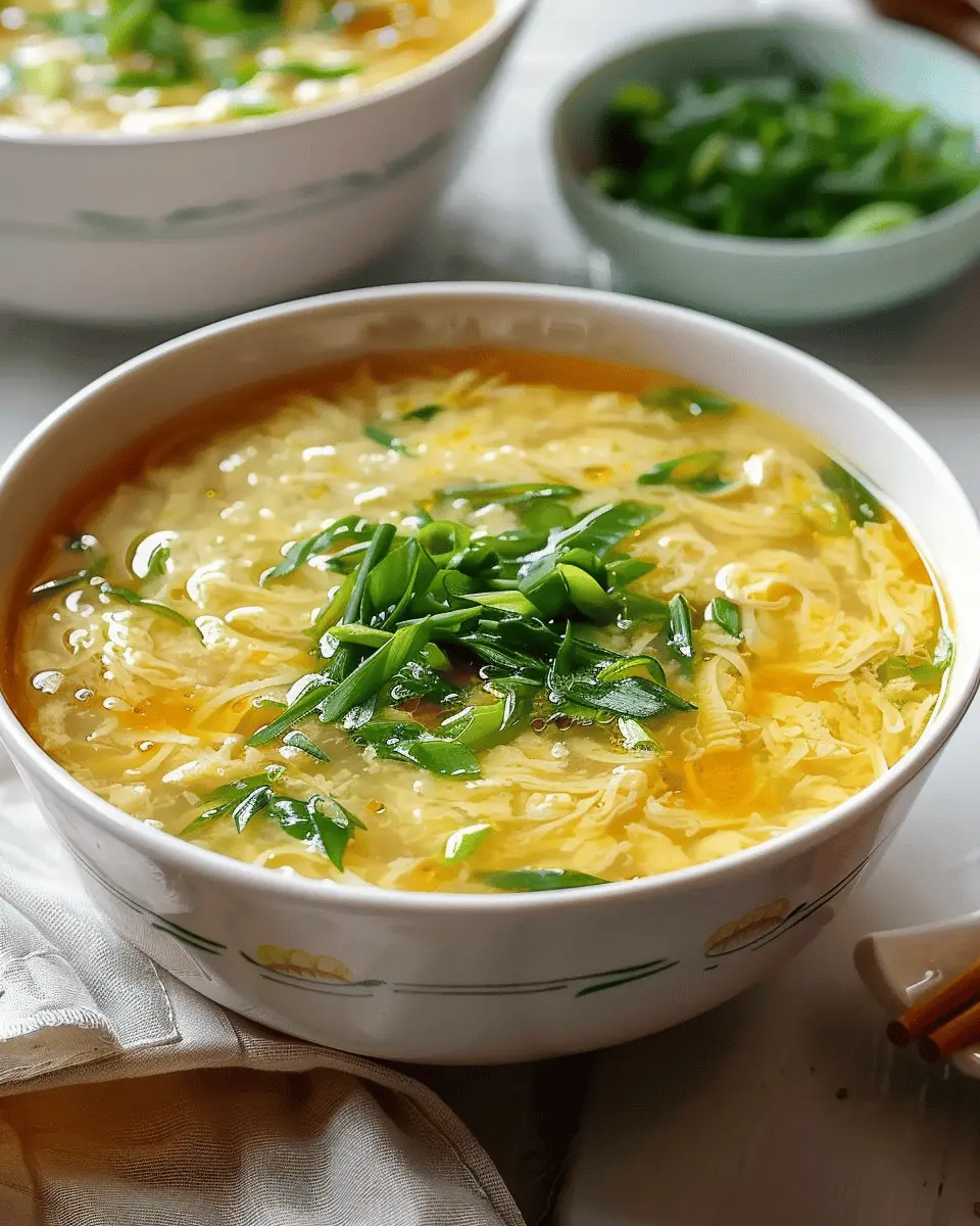A warming and satisfying bowl of Chinese Egg Drop Soup, perfect for chilly nights.