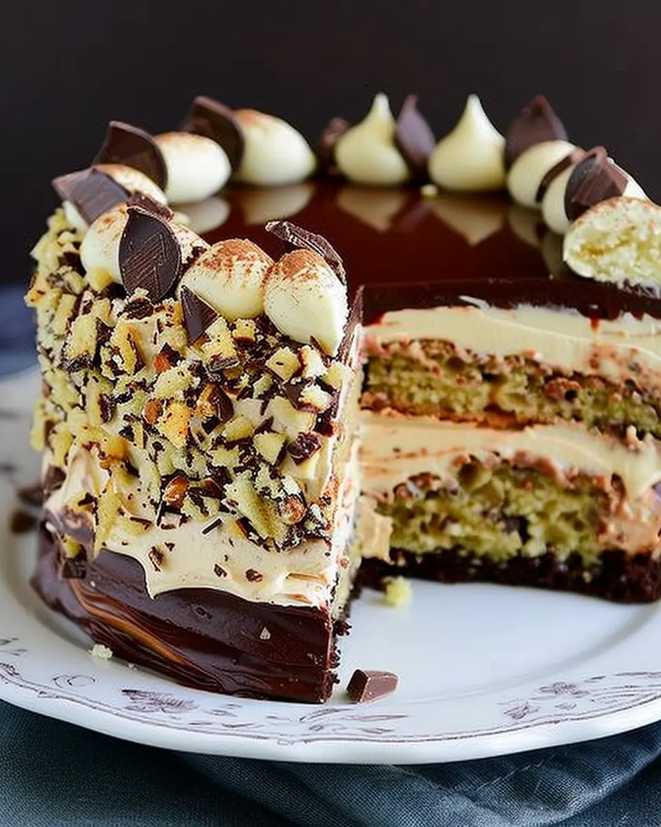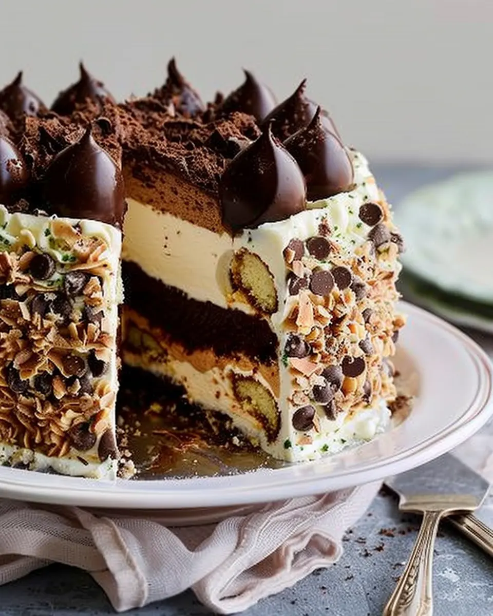 A decadent Chocolate Cannoli Cake that combines rich chocolate flavors with creamy cannoli filling.