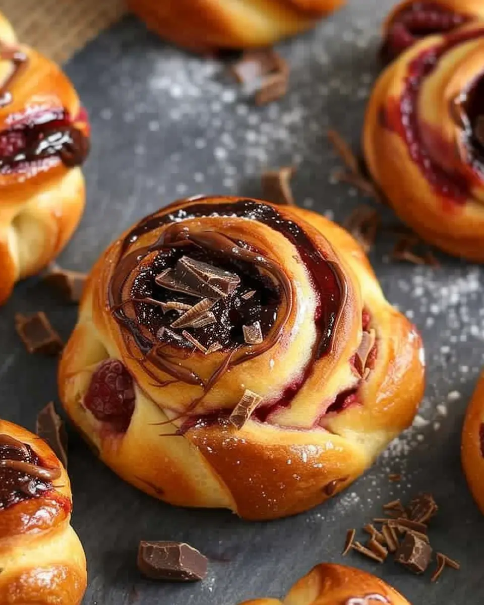 Flavor Fusion: The rich chocolate blends beautifully with the tartness of raspberries, creating a perfect balance that dances on your palate. Here, the raspberries introduce a refreshing brightness that complements the sweetness of the brioche.