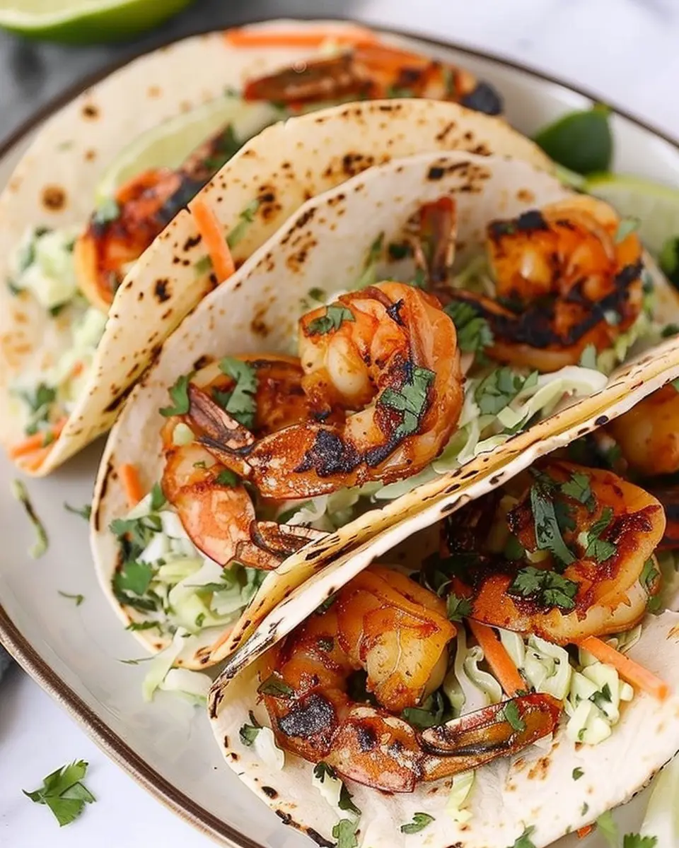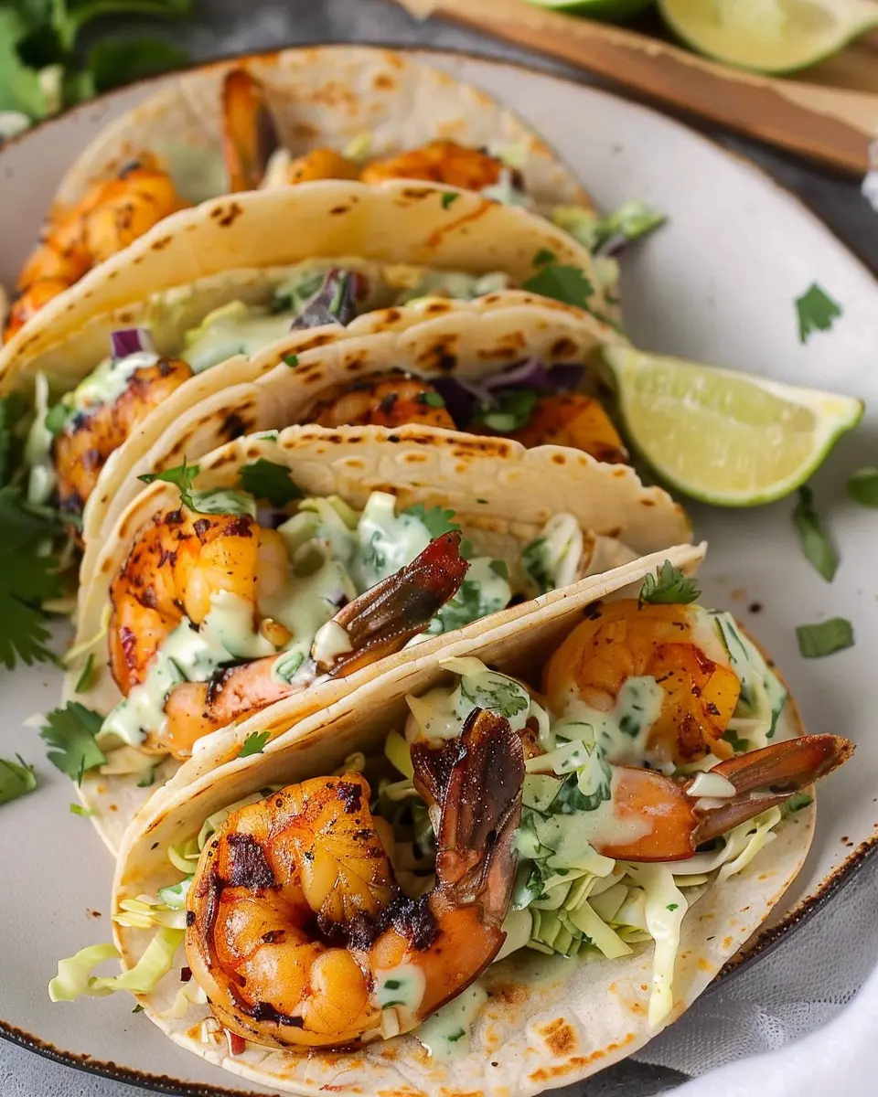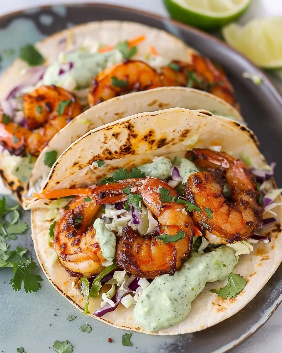 Keywords: Cilantro Lime Shrimp Tacos, Easy Recipe, Creamy Slaw