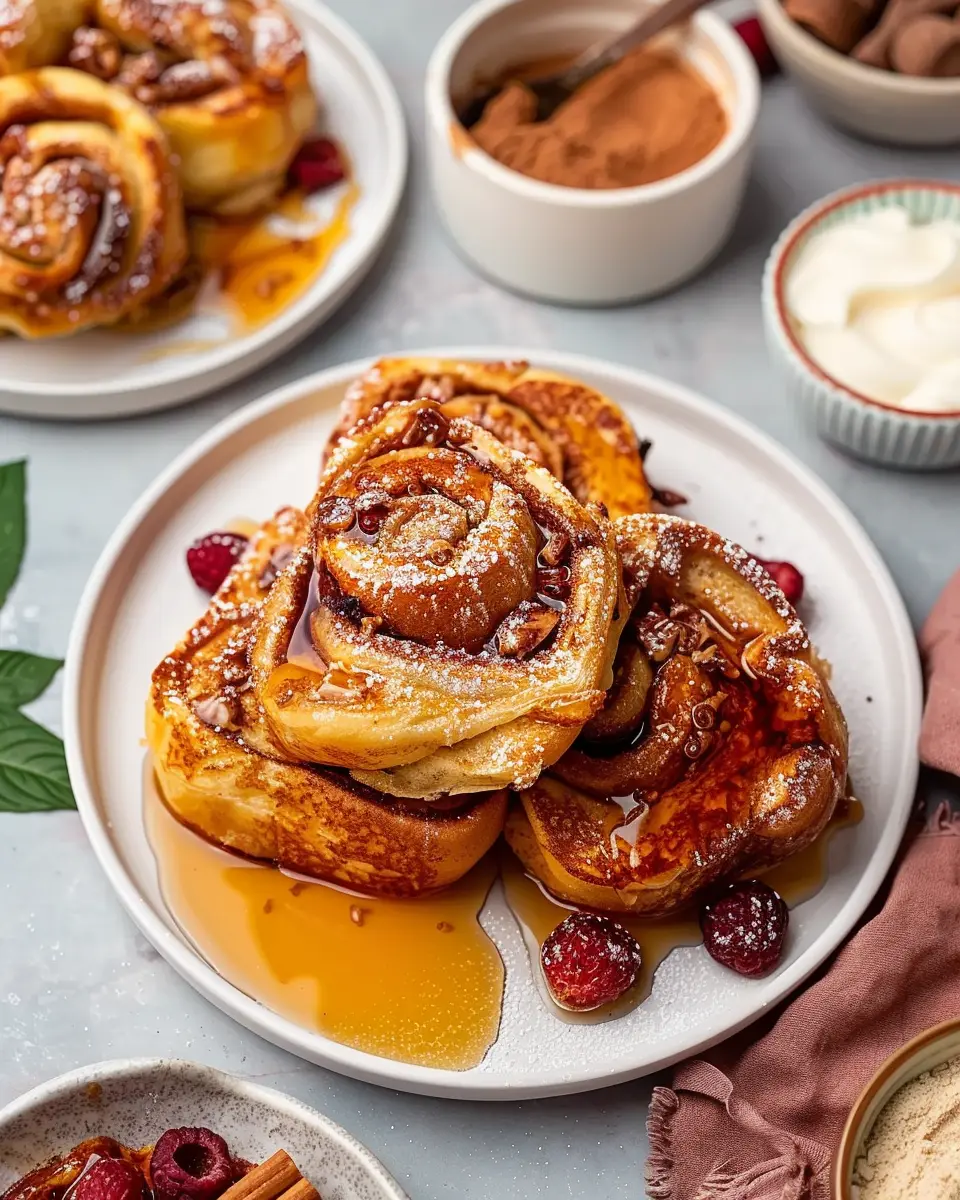 Transform your Cinnamon Roll French Toast into a decadent delight with a variety of toppings. Here are some tasty options to consider:
