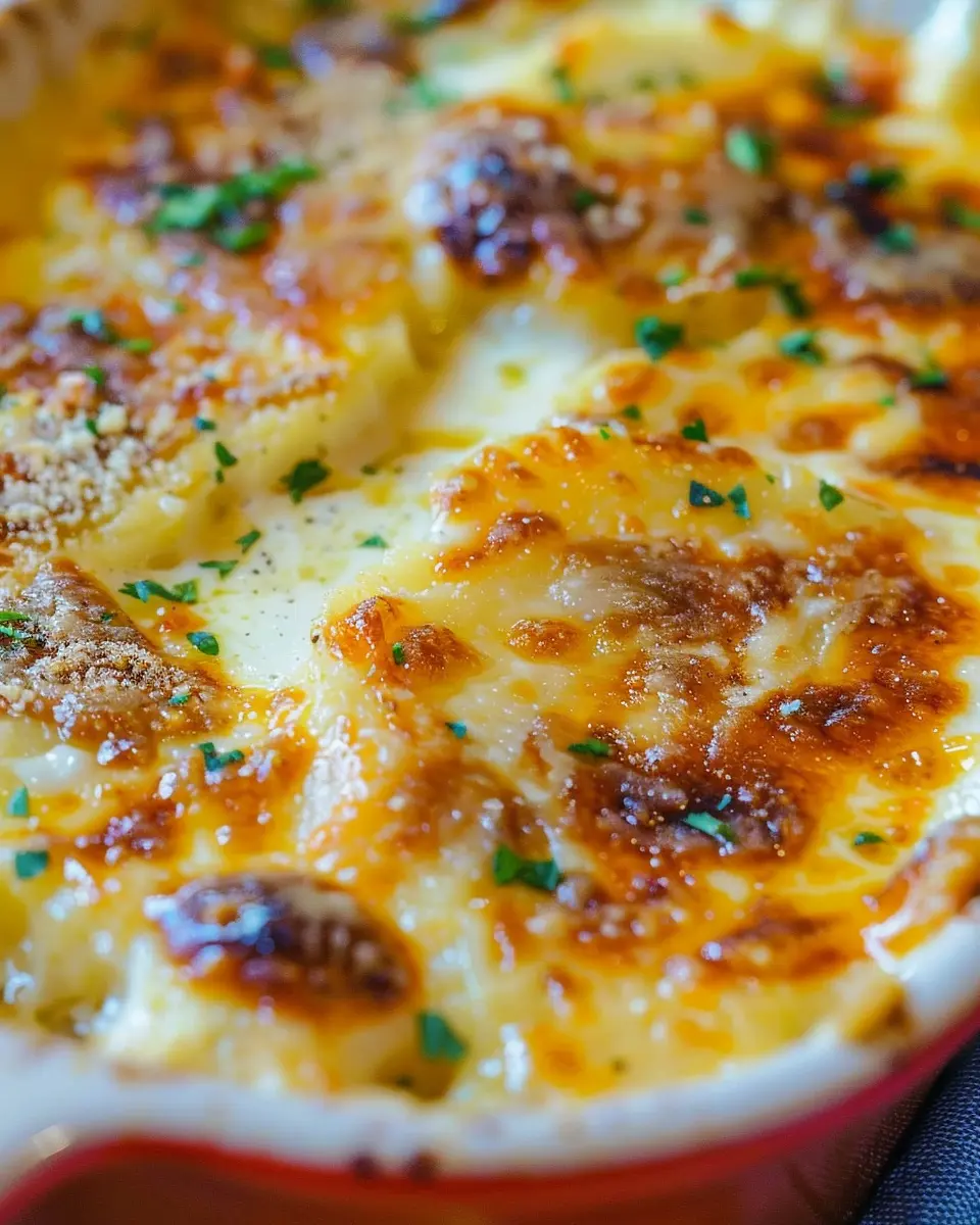 Once the potatoes are tender, transfer them from the pot into a greased baking dish. Spread them out evenly. Now, for the ultimate indulgence—top the potatoes with a generous layer of grated cheese. You can’t really go wrong here; whether you choose sharp cheddar or nutty Gruyère, the melted cheese forms that beautiful, crusty topping we all love in a good gratin.