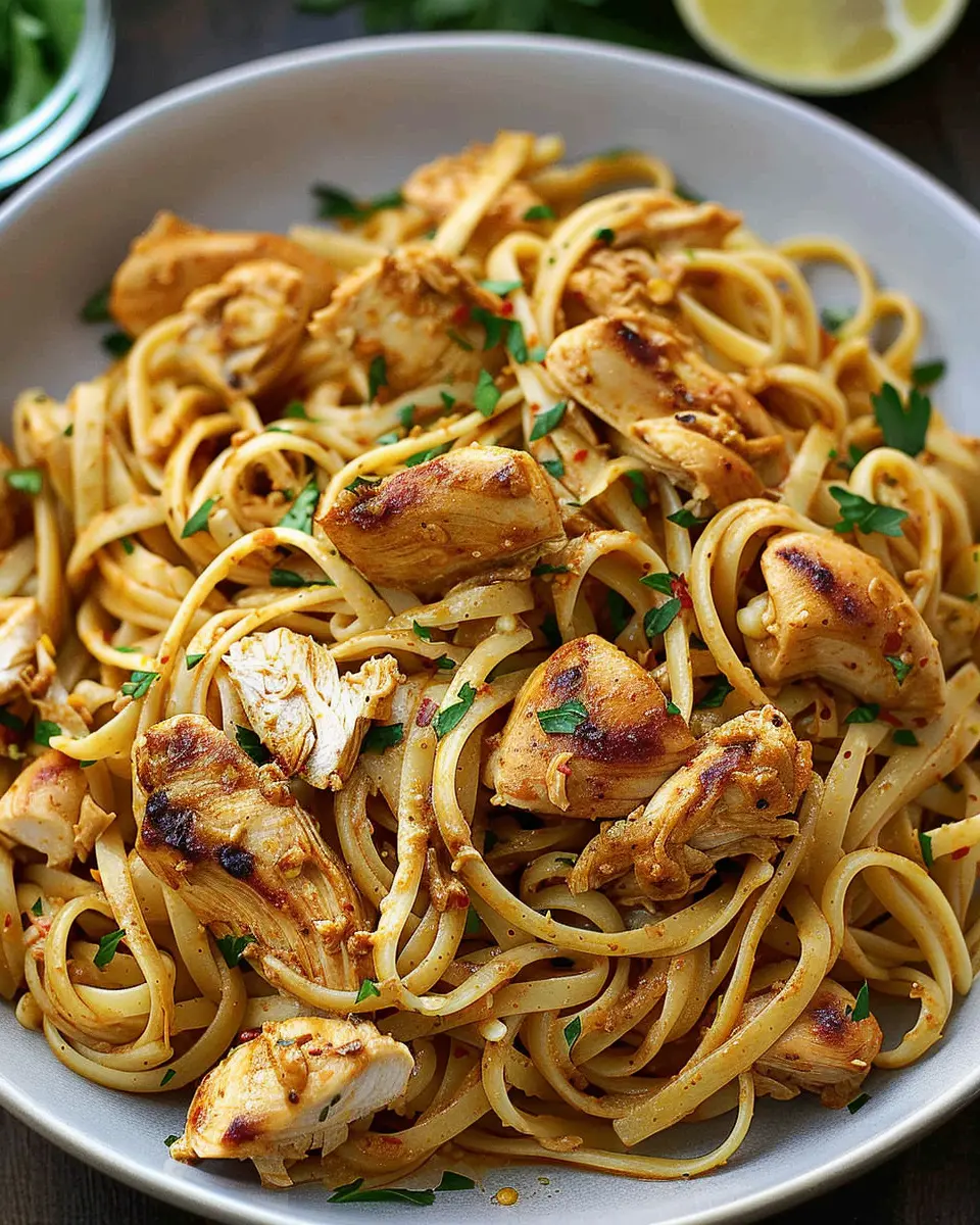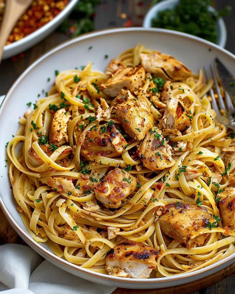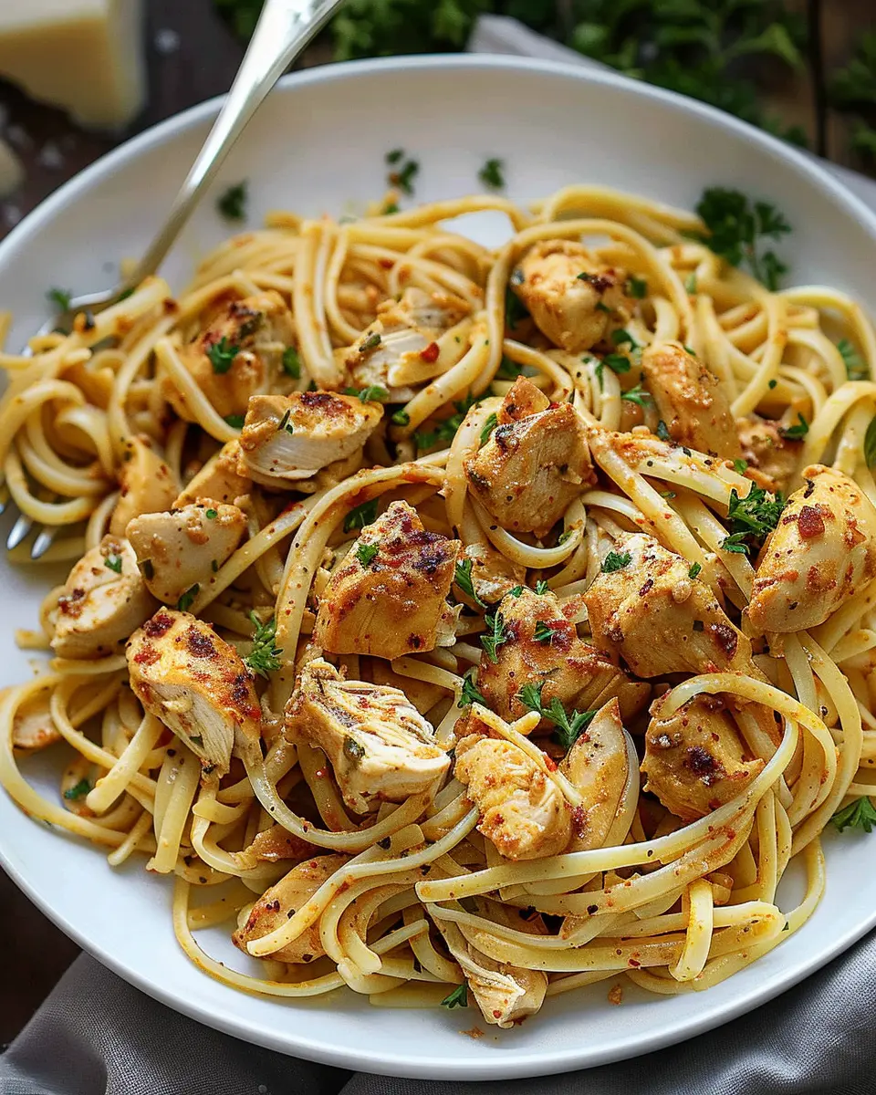 Cowboy Butter Chicken Linguine is a delicious fusion of flavors, combining creamy butter, zesty spices, and tender chicken on a bed of linguine.