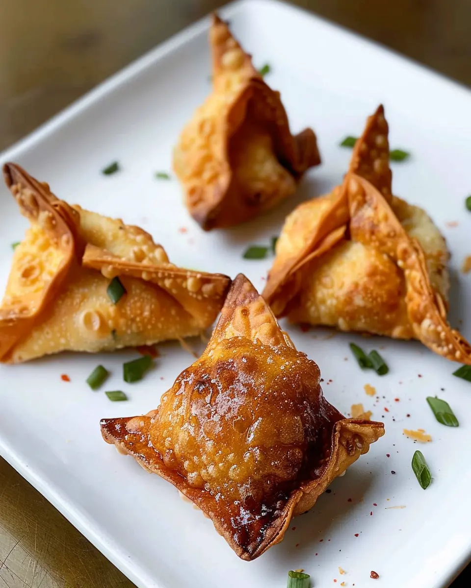 - Garnish: Top your finished rangoon with sliced green onions or a sprinkle of red pepper flakes.