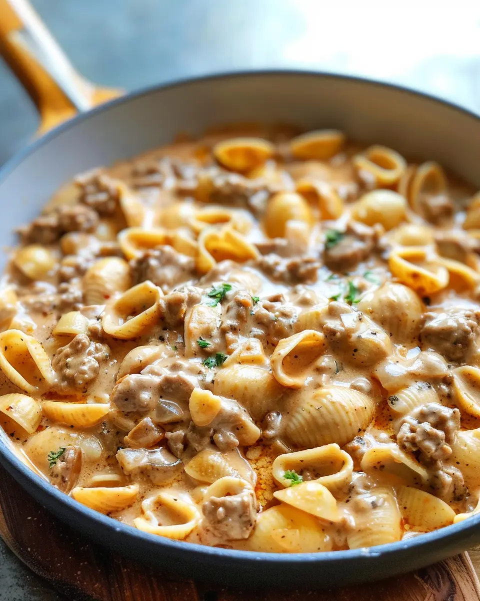 A delicious and quick recipe for creamy beef and shells, perfect for busy weeknights.