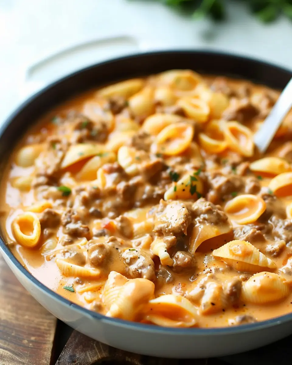 A delicious and quick recipe for creamy beef and shells, perfect for busy weeknights.