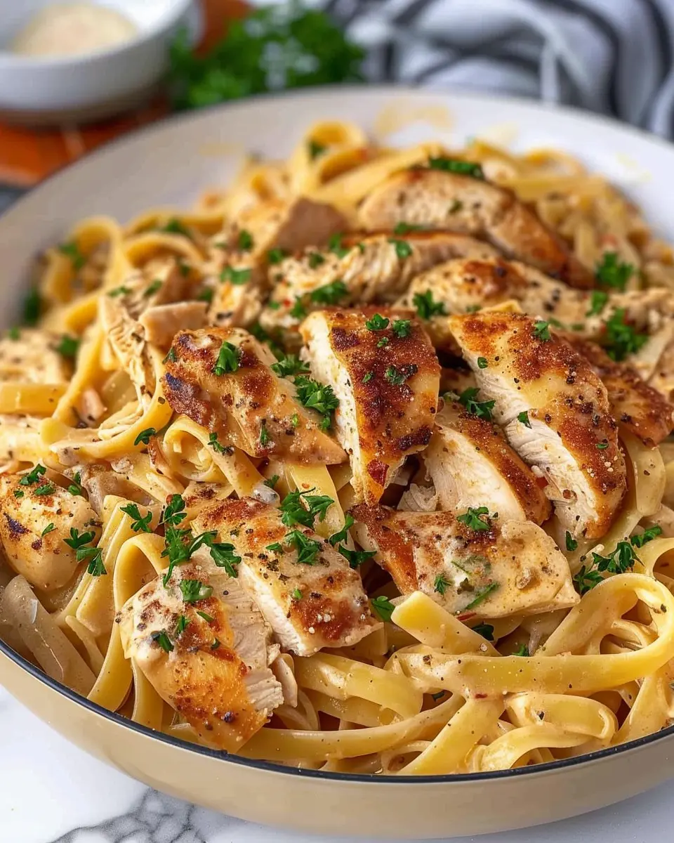 The cooking part is equally quick, coming in at around 20 minutes. You’ll sauté the chicken, make that luscious creamy sauce, and then toss in the pasta. It’s a delightful whirlwind of flavors coming together.
