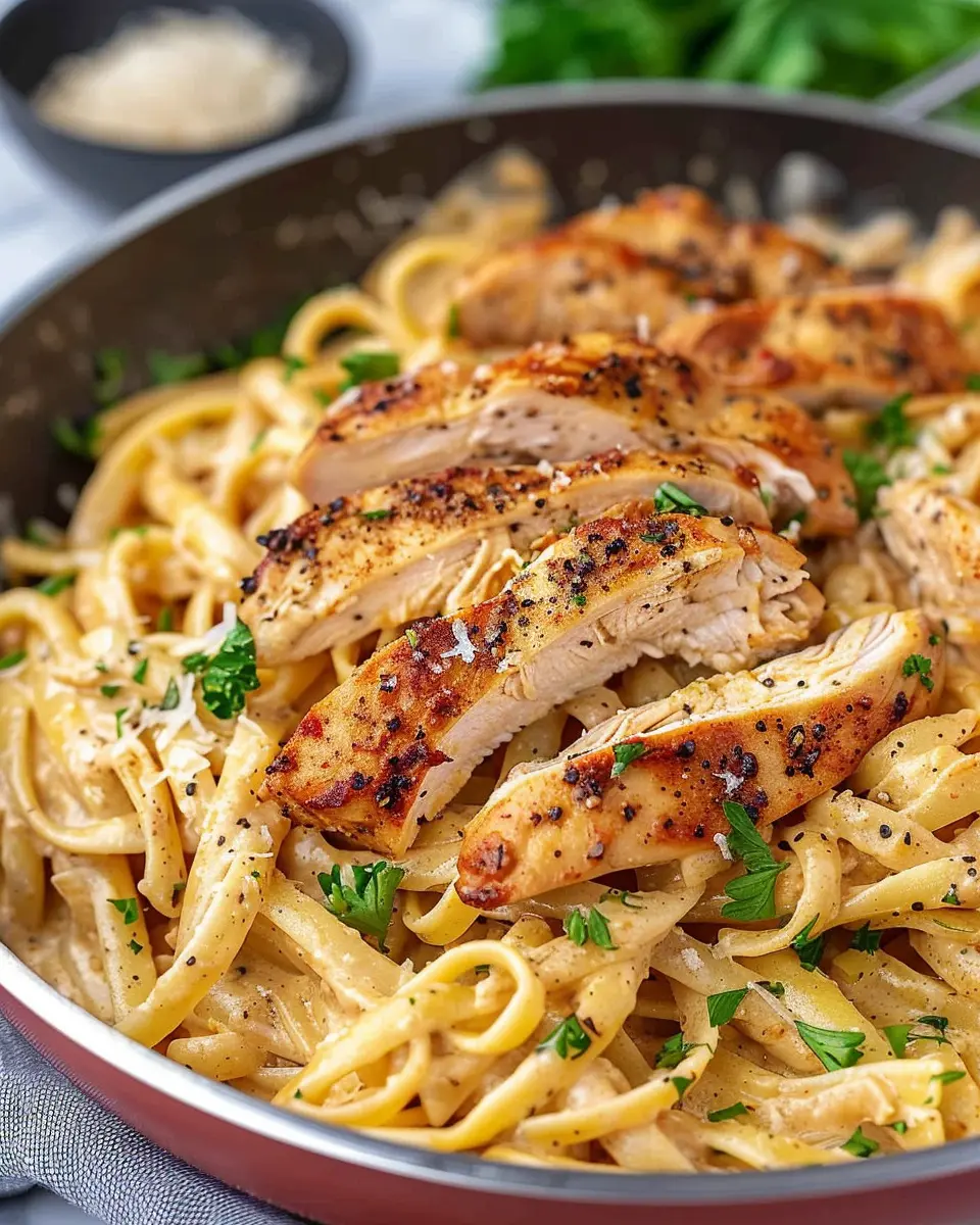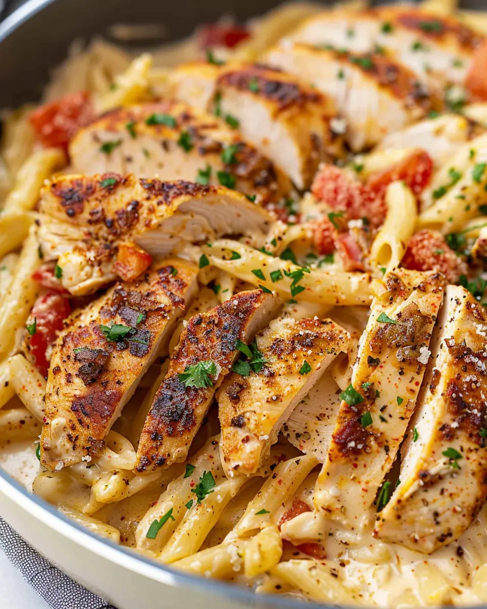 Garnishing Creamy Cajun Chicken Pasta can take your dish from great to gourmet. A sprinkle of fresh parsley or green onions adds a vivid touch. For an unexpected twist, consider a dash of smoked paprika or cayenne—the heat complements the dish and provides an extra visual appeal.