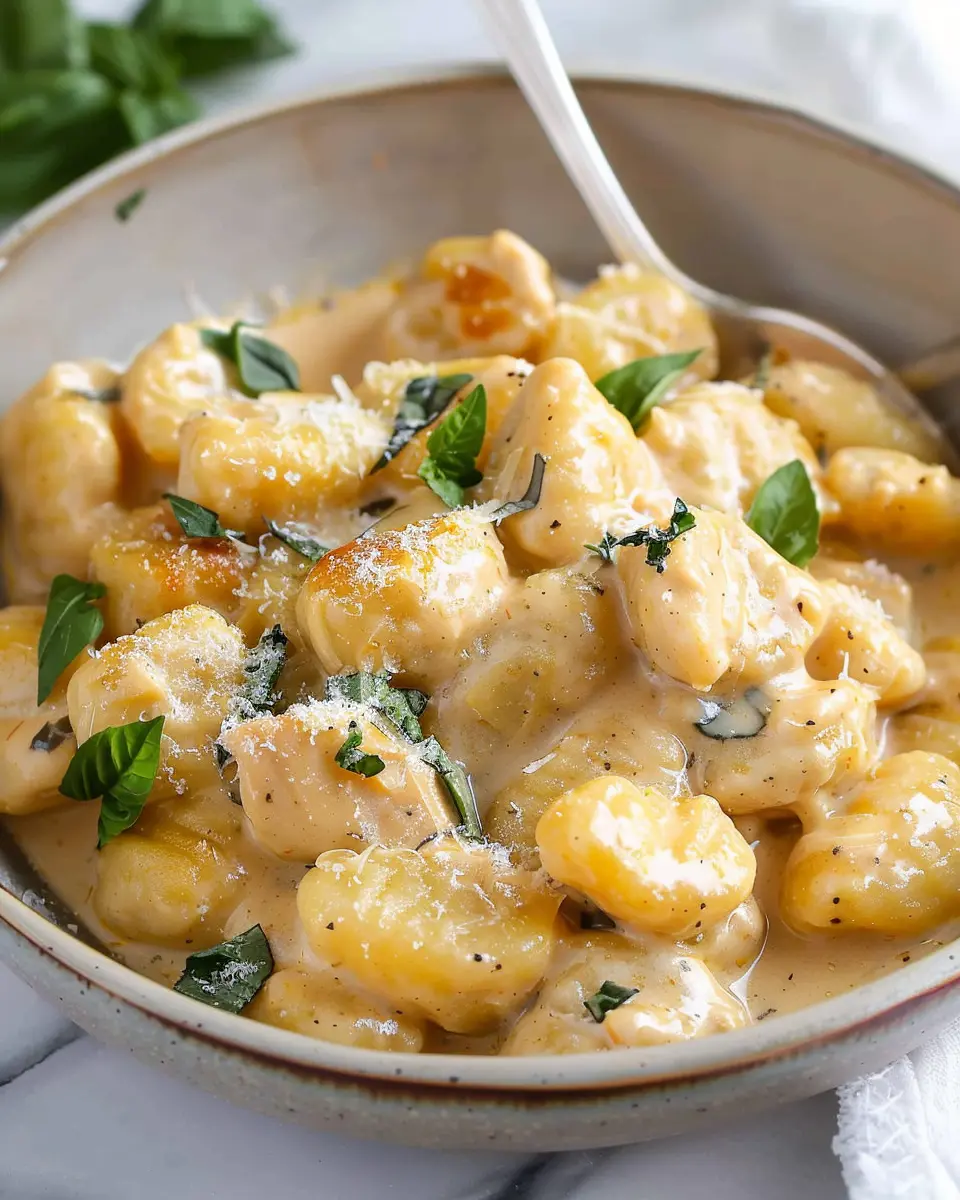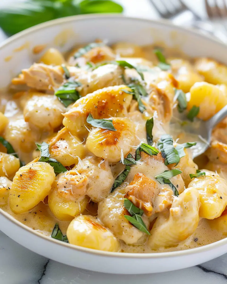 And voilà, your creamy chicken gnocchi is ready to be served!