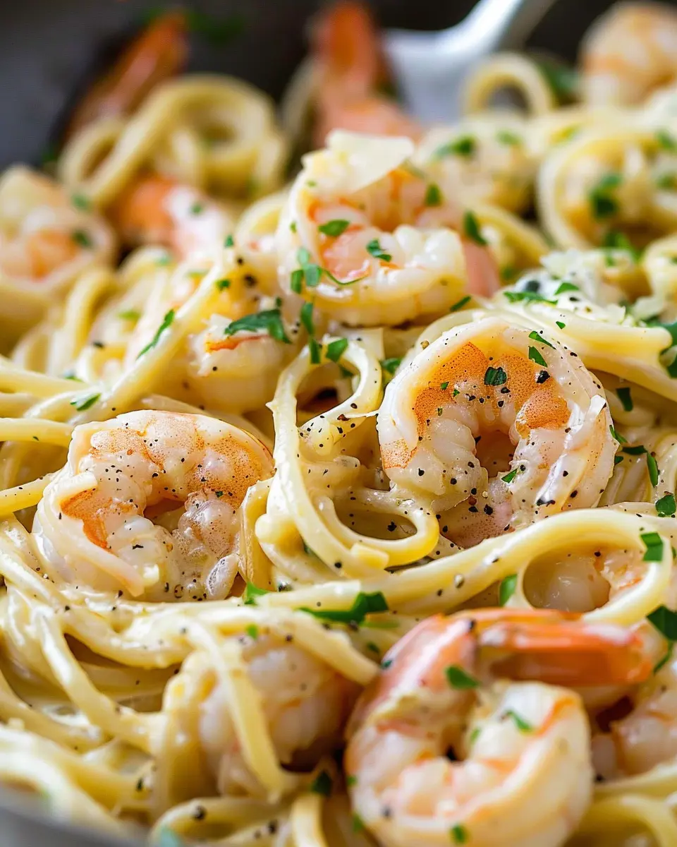 A delightful and creamy pasta dish featuring shrimp and garlic for a quick and satisfying meal.
