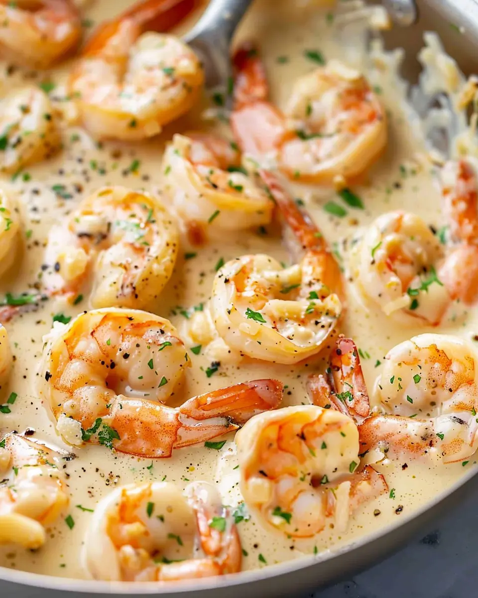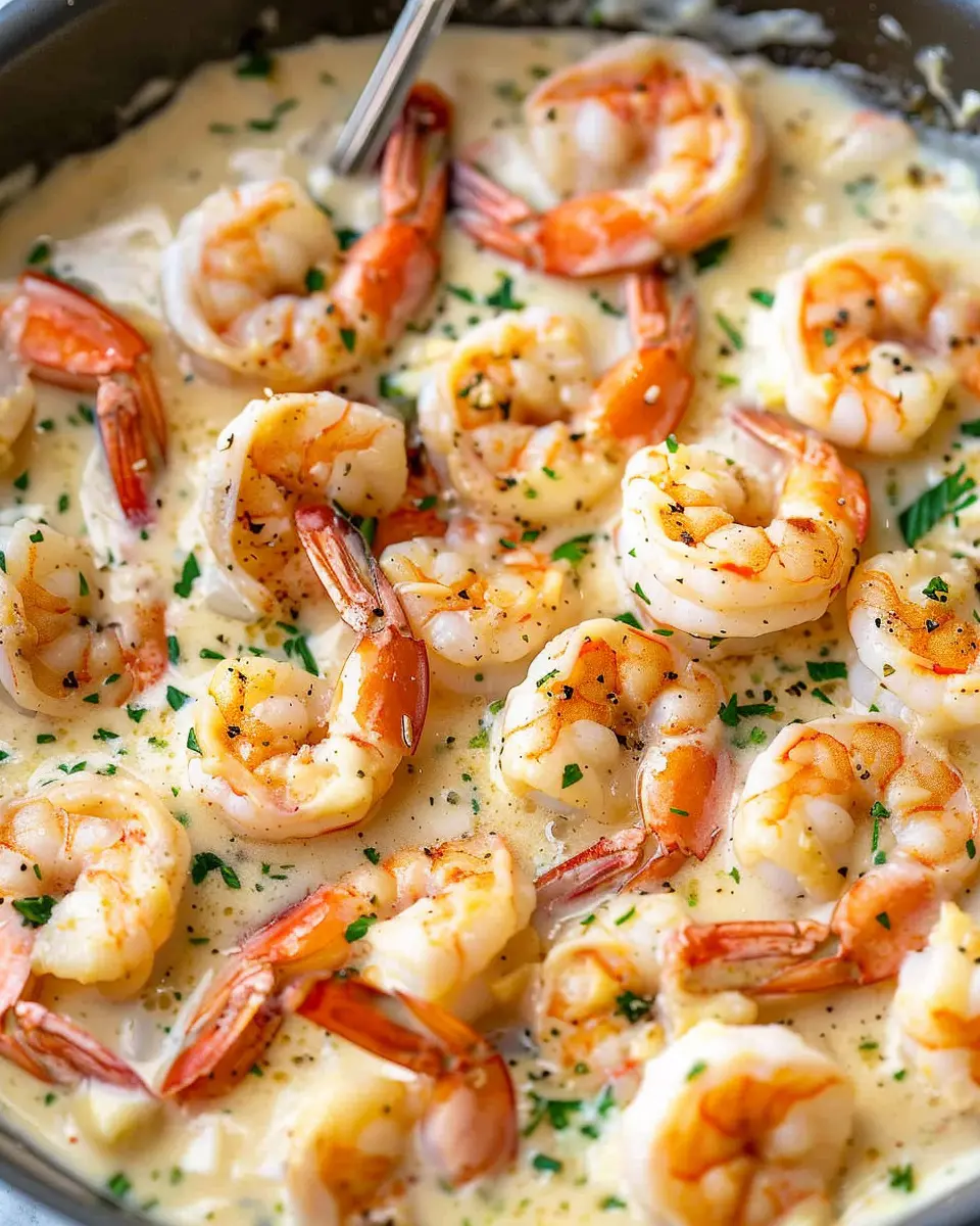 Indulge in the rich flavors of creamy garlic shrimp with a hint of parmesan, perfect for a cozy dinner.