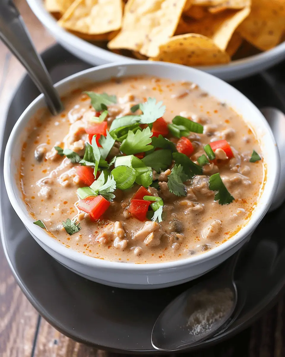 Presentation can elevate any dish, and your creamy ground chicken chili is no exception! Try topping it with: