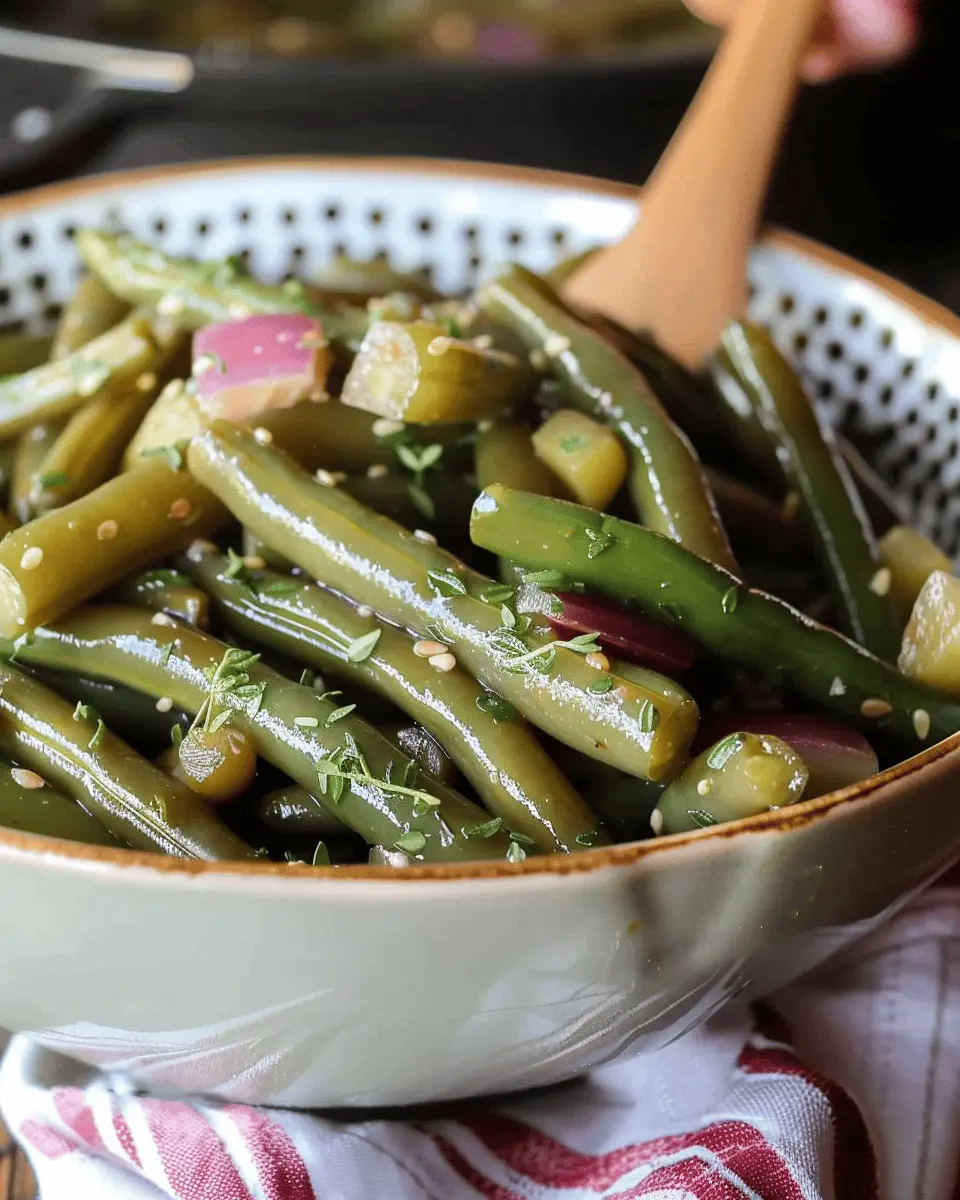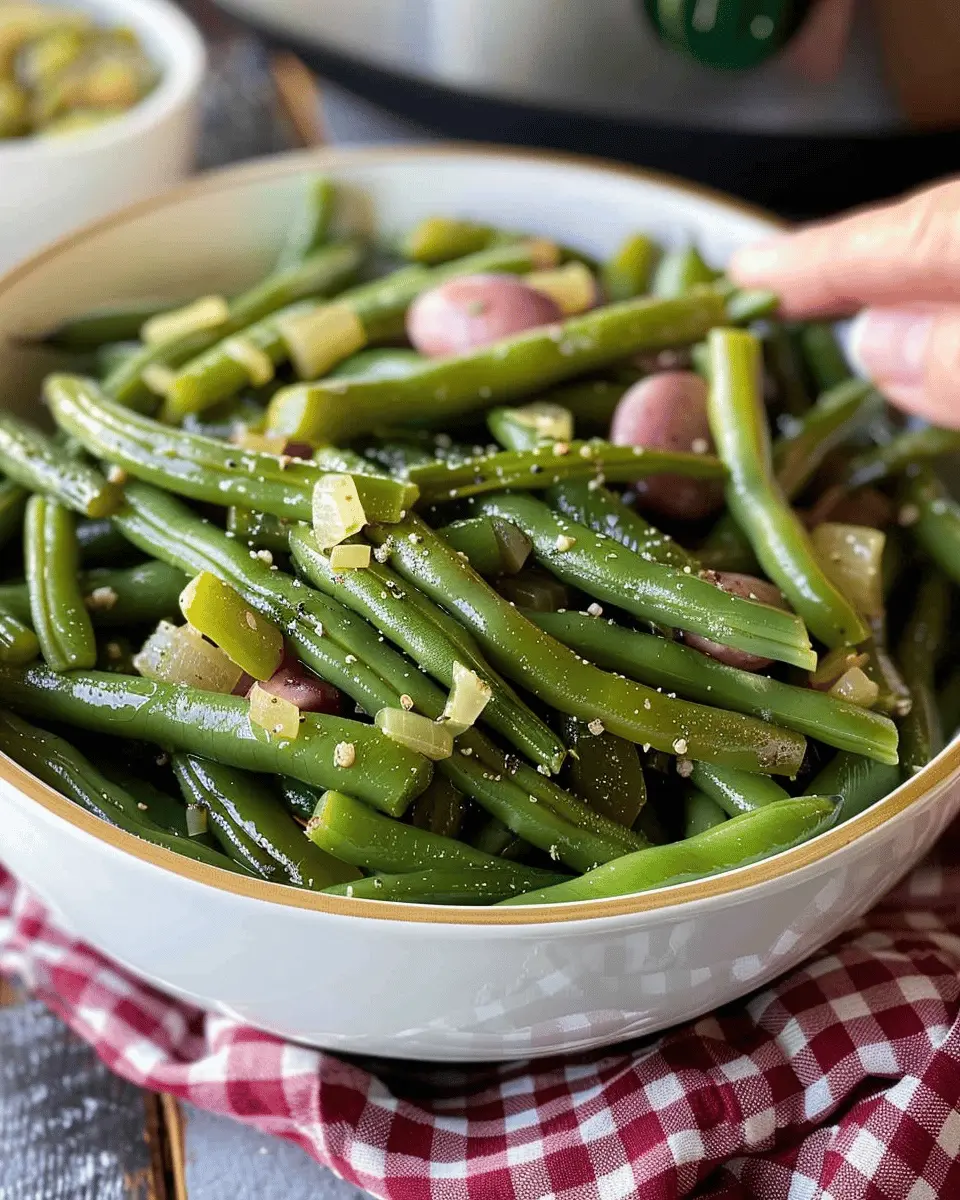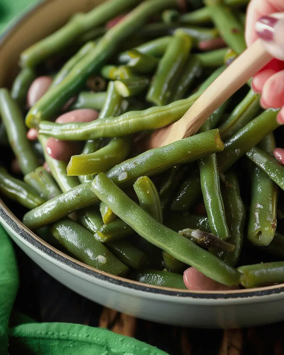 As the green beans cook, you’ll begin to notice mouthwatering aromas wafting through your kitchen. This slow cooking method allows the flavors to meld beautifully, creating a savory, satisfying dish that’s perfect for family dinners or gatherings.