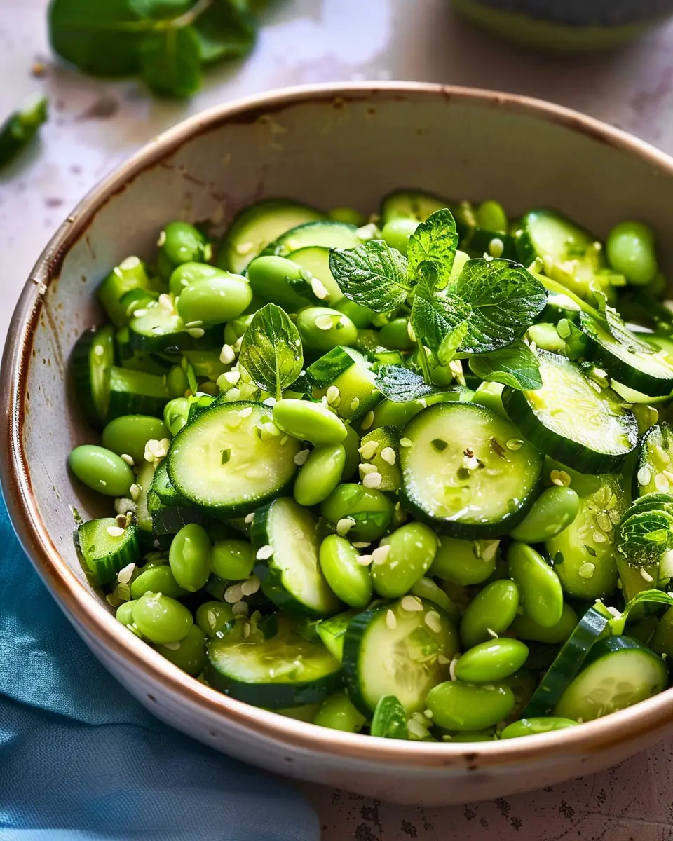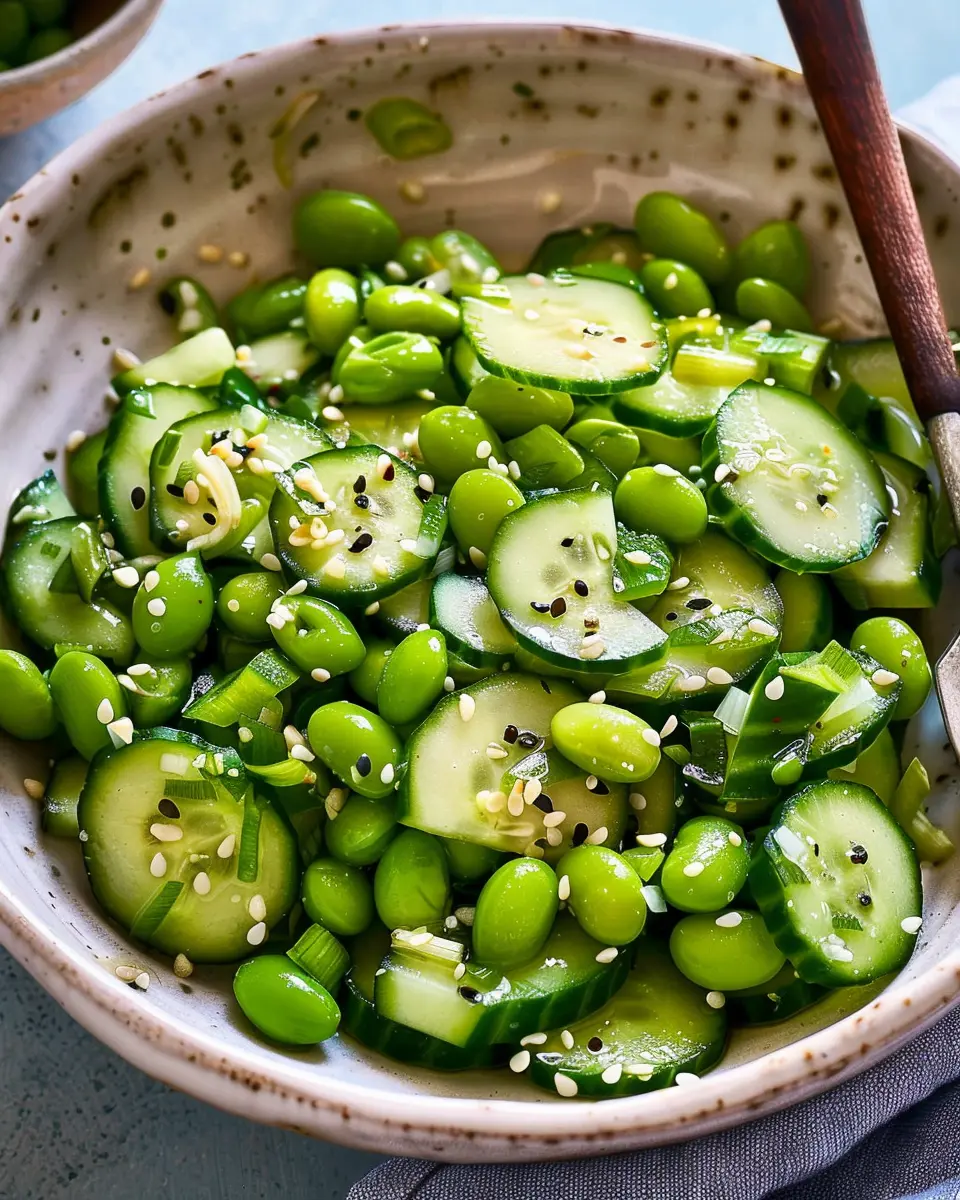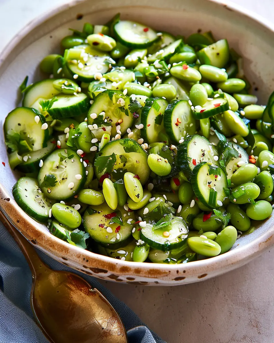 A crisp and refreshing salad combining cucumbers and edamame, perfect for a light meal or side dish.