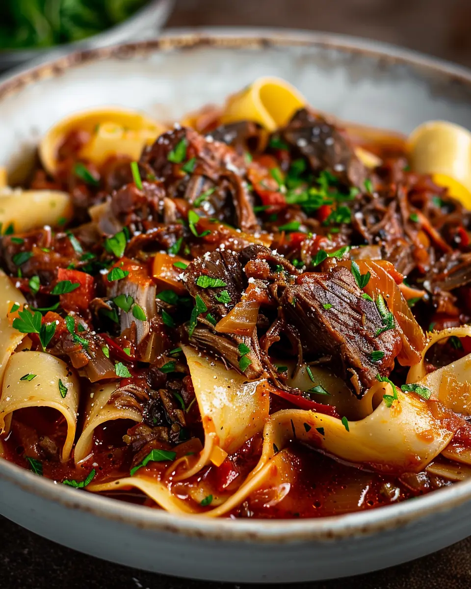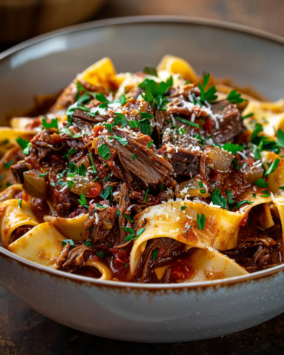 To impress your guests, serve the Dutch Oven Short Rib Ragu in wide, shallow bowls. This not only allows the ragu to shine but also highlights the texture of the pappardelle. Garnish with freshly grated Parmesan and a sprinkle of fresh herbs like basil or parsley for color and freshness. A drizzle of high-quality olive oil just before serving adds an extra layer of flavor.
