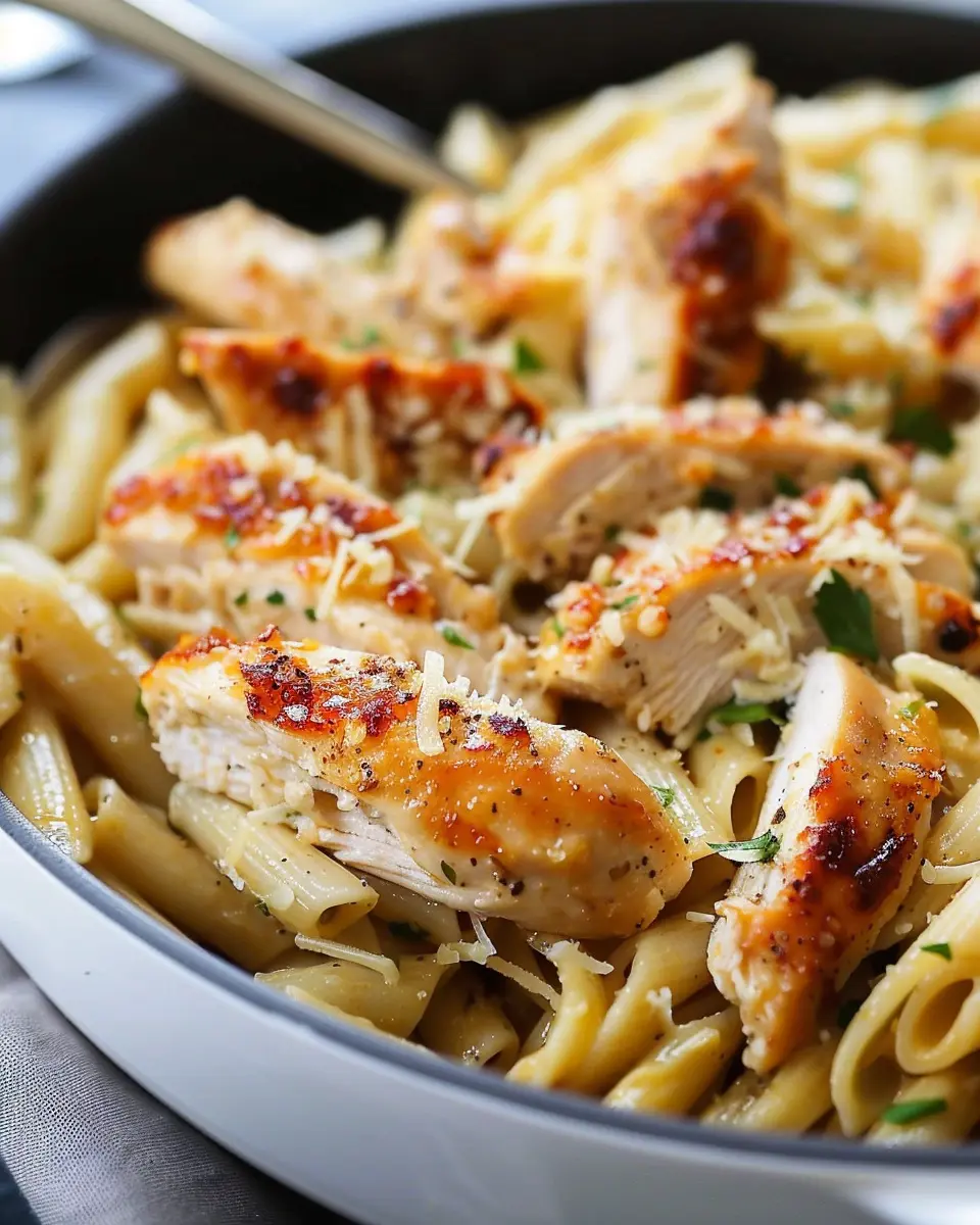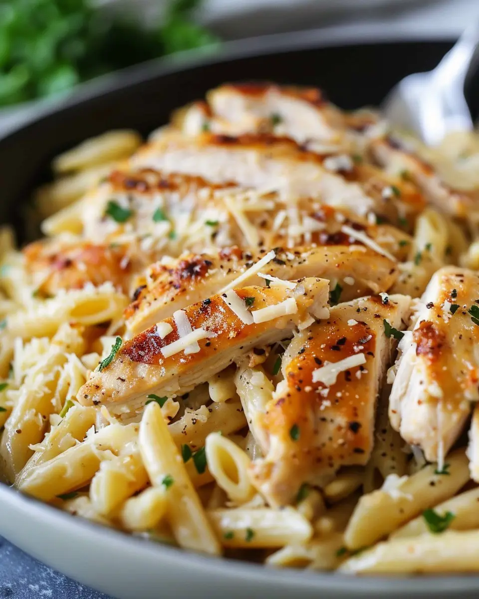 Enjoy a delicious and easy Parmesan chicken pasta that brings comfort to your dinner table.