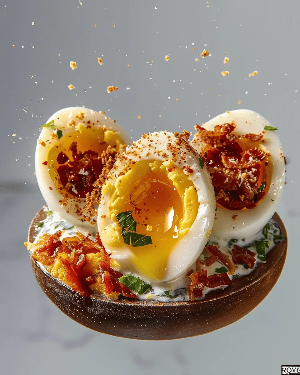 An Egg Flight is a creative and delicious way to showcase a variety of deviled eggs, featuring different flavors and toppings. It’s perfect for gatherings or a casual get-together, where everyone can sample different tastes. Think of it as a tasting experience that turns simple deviled eggs into a flavorful adventure! Each egg can be personalized with unique ingredients like Turkey Bacon, Chicken Ham, or even fresh herbs.
