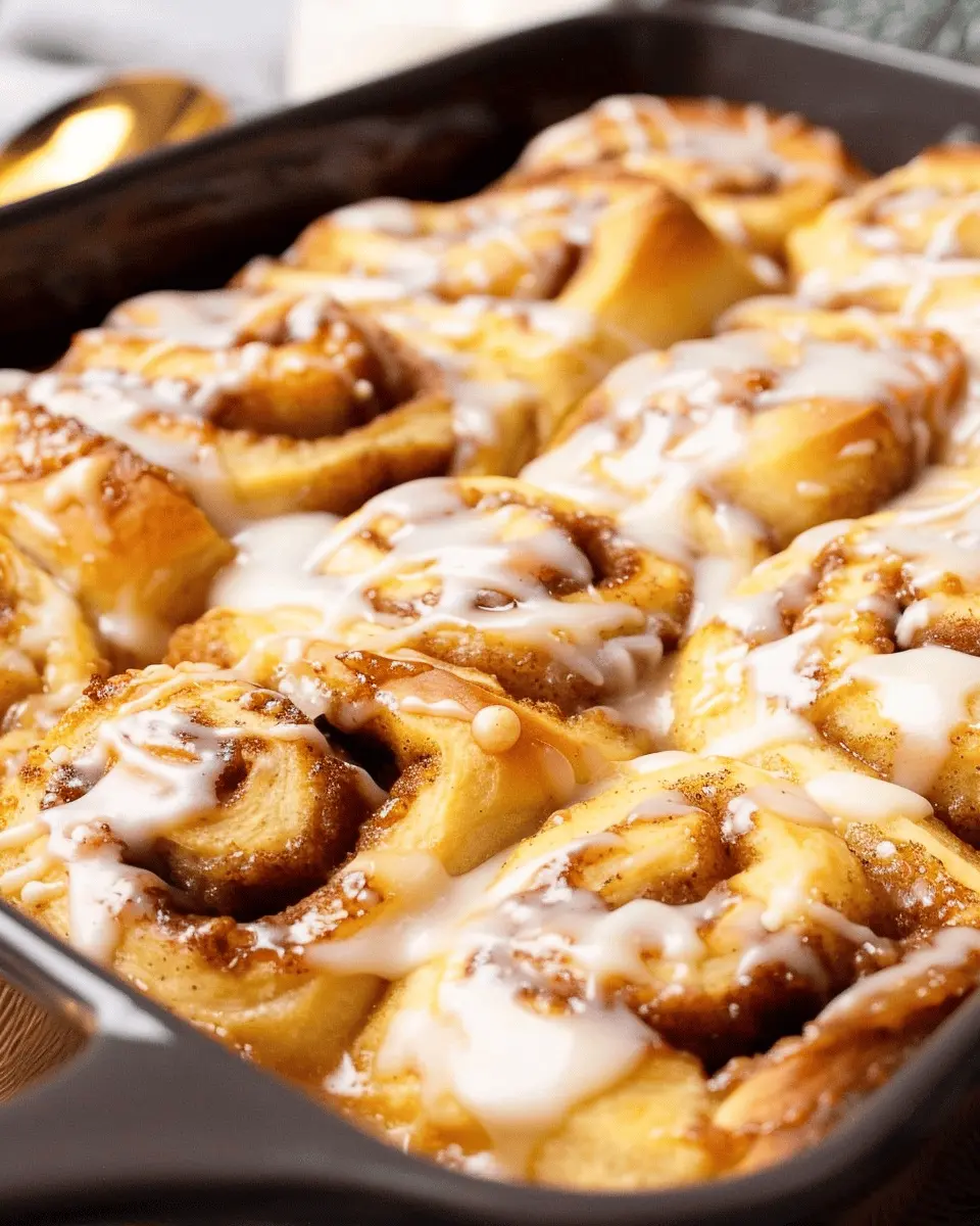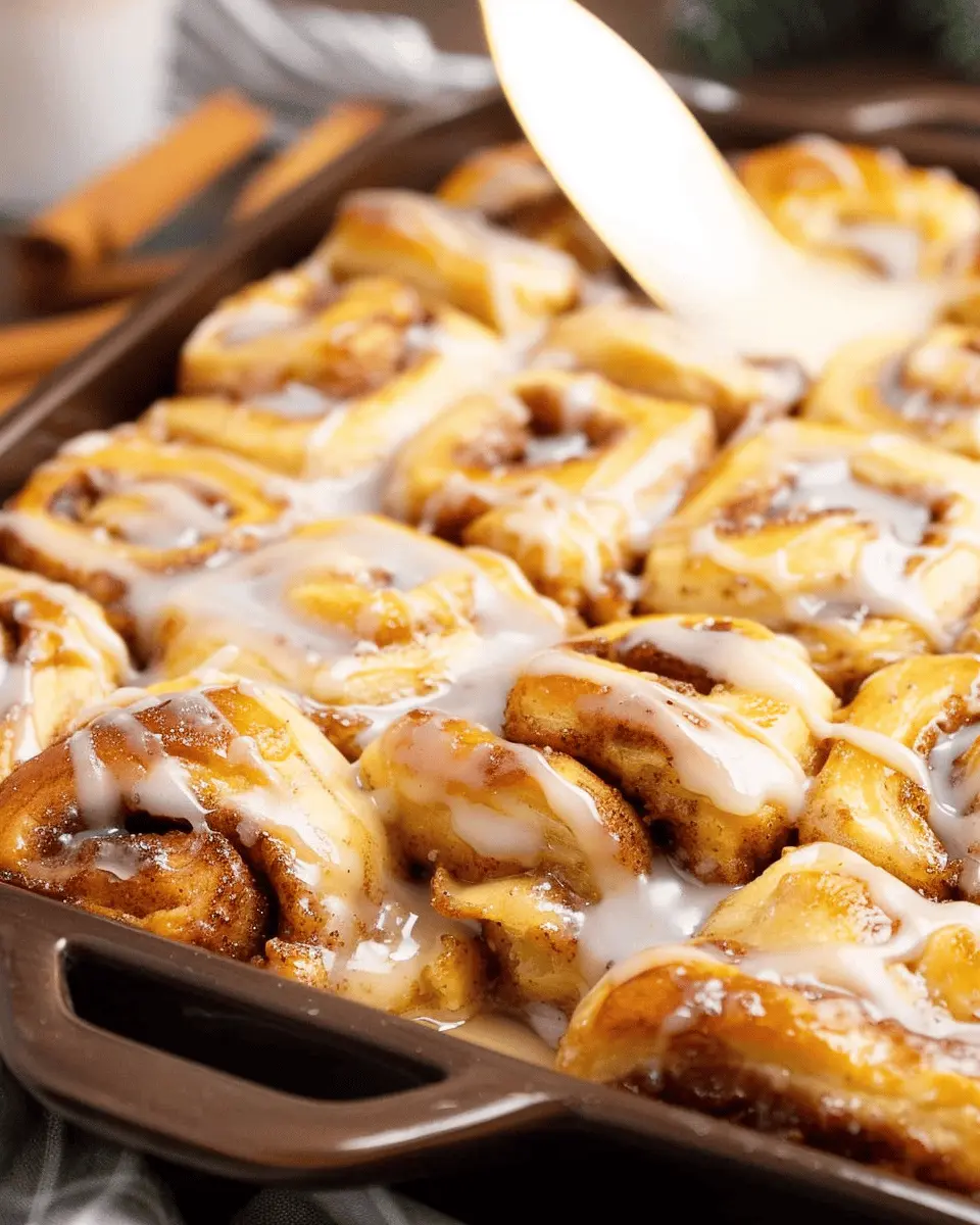 Once baked, allow it to cool slightly before drizzling the reserved icing over the top. This final touch elevates your Eggnog Cinnamon Roll Casserole into a festive delight that is sure to impress your family and friends.