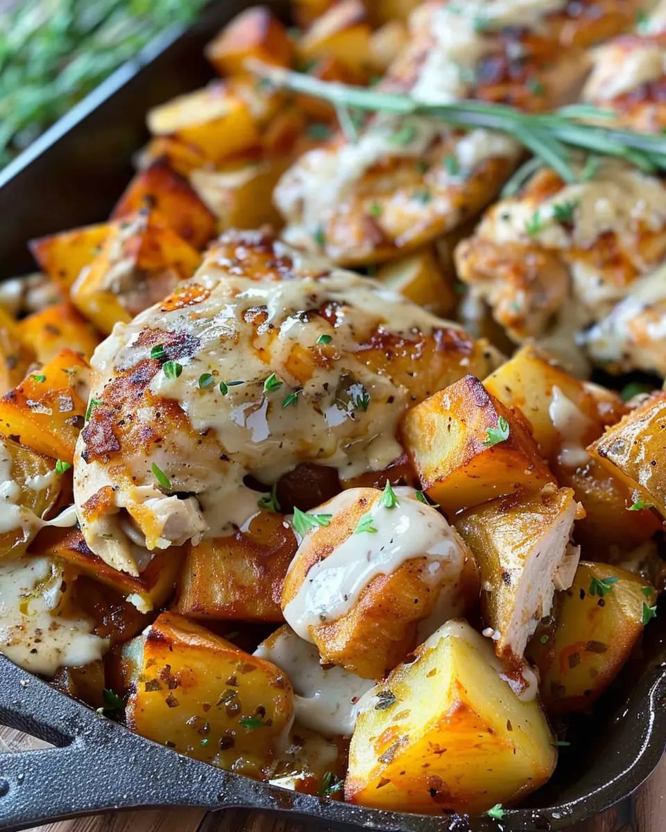 In summary, garlic parmesan chicken and potatoes make for a delightful meal that’s as comforting as it is tasty. The combination of succulent chicken tossed in a savory garlic and parmesan mixture, paired with perfectly roasted potatoes, creates a mouthwatering harmony that tantalizes the taste buds. Plus, it’s an easy one-pan dish that simplifies cleanup, making it a go-to for busy weeknights.