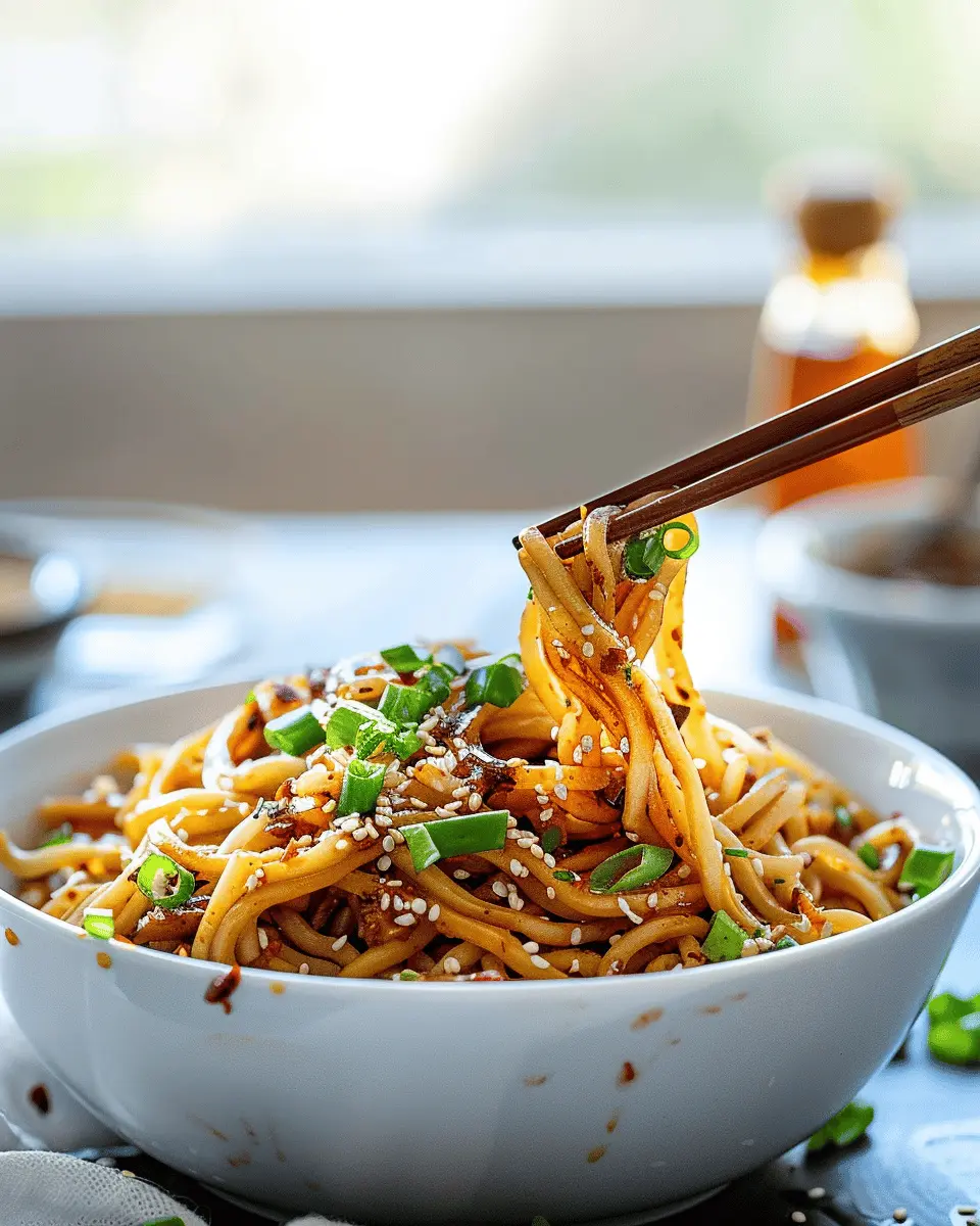 Keywords: Ginger Chili Crisp Noodles, spicy noodles, quick recipes, Asian cuisine