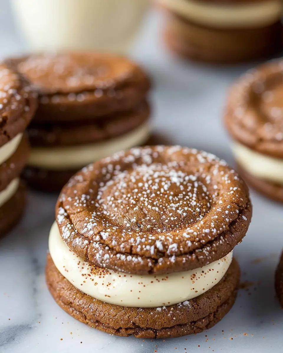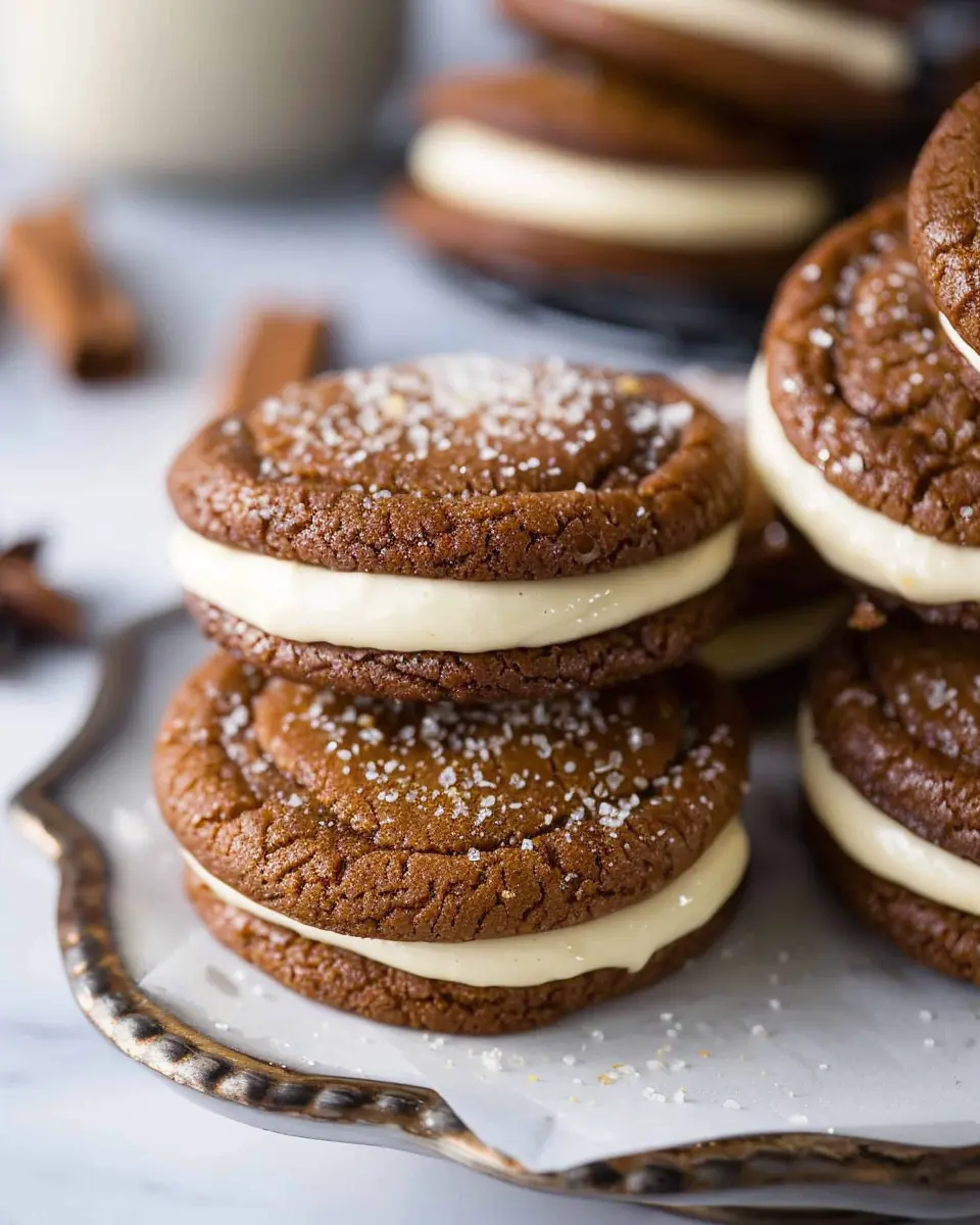 These delicious Ginger Molasses Sandwich Cookies are sure to be a hit during the holiday season with their rich flavor and creamy eggnog frosting.