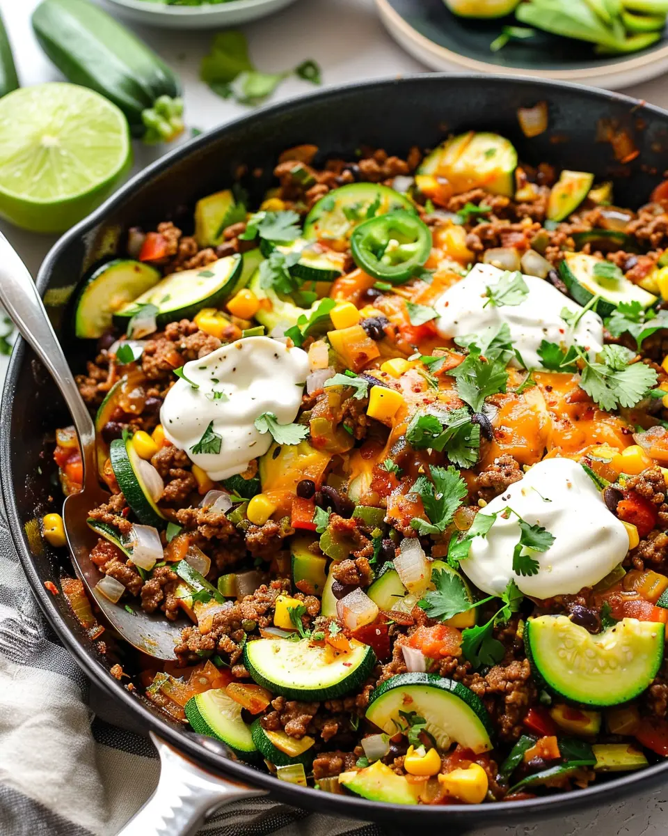 Creating a delicious Ground Beef and Zucchini Skillet is not only a time-saver but also allows for a nutritious and flavorful meal that fits beautifully into your busy lifestyle. In this guide, we’ll walk through the steps to prepare a dish that’s bursting with Mexican-inspired flavors.