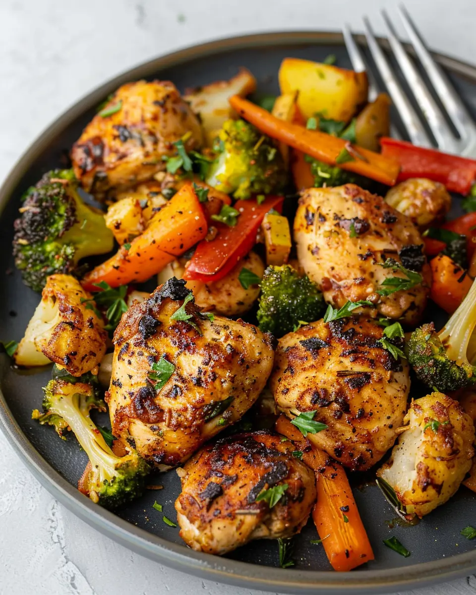 Achieving a lovely char on your chicken and veggies is all about timing and techniques. In the last 5 minutes of cooking, increase the temperature to 400°F (204°C). This will help create that darkened, crispy exterior that makes meals visually enticing and delicious.