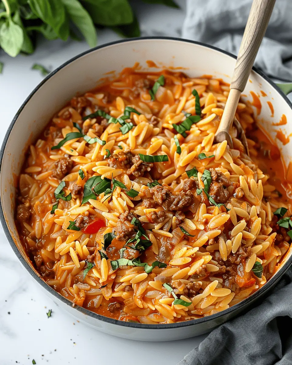 Cooking can sometimes feel intimidating, especially on a busy weeknight. But with this hearty ground beef orzo with tomato cream sauce, you’ll realize that preparing a delicious meal doesn’t have to take hours. Let’s walk through the steps together!