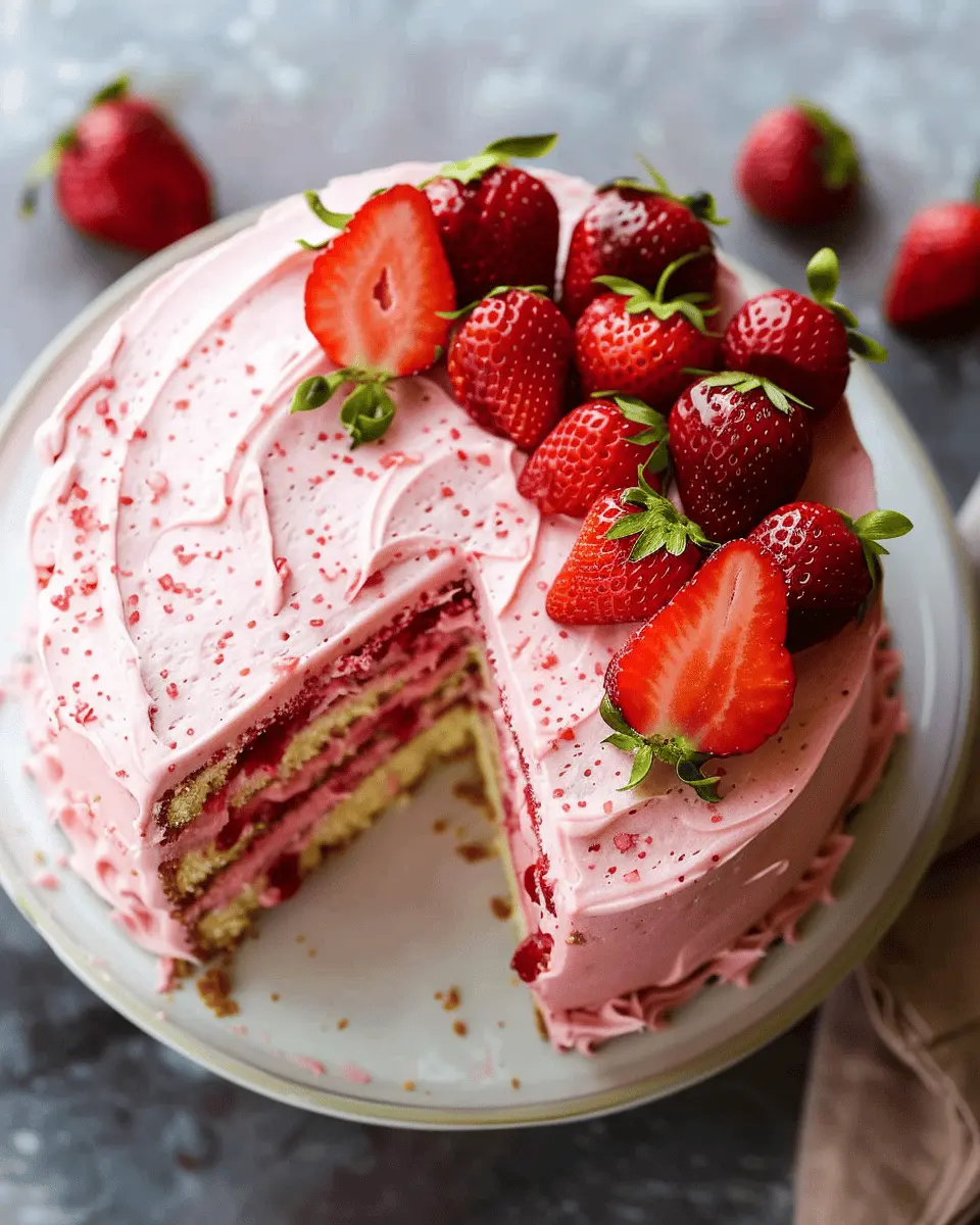 And there you have it! The most delightful homemade strawberry cake that’s sure to impress at your next gathering. This moment of creation is not just about baking; it’s about making memories. Enjoy every delicious bite!