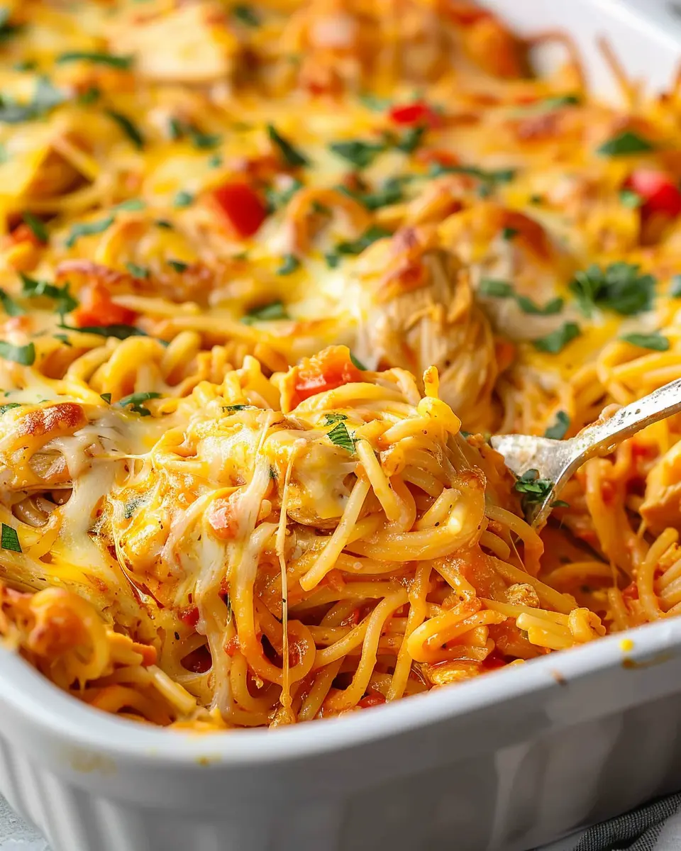• Make-Ahead: You can assemble your Irresistible Spicy Southern Chicken Spaghetti Casserole a day in advance. Just cover it tightly and refrigerate until you’re ready to bake.