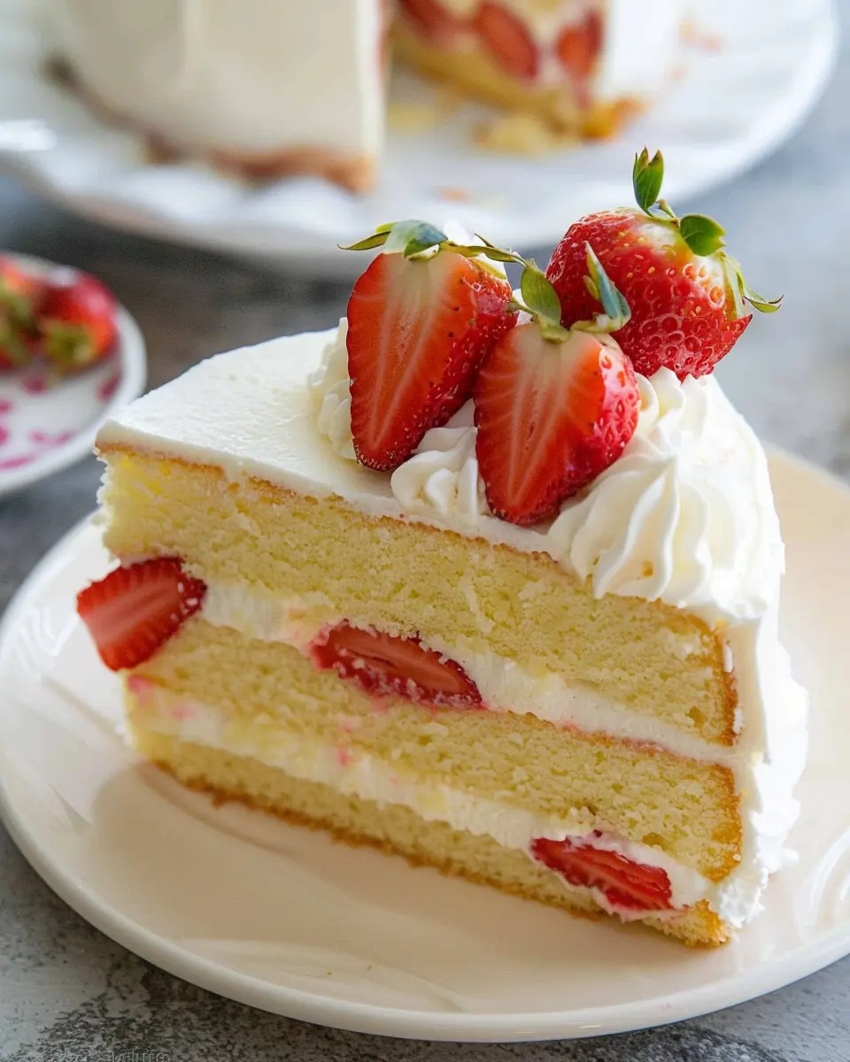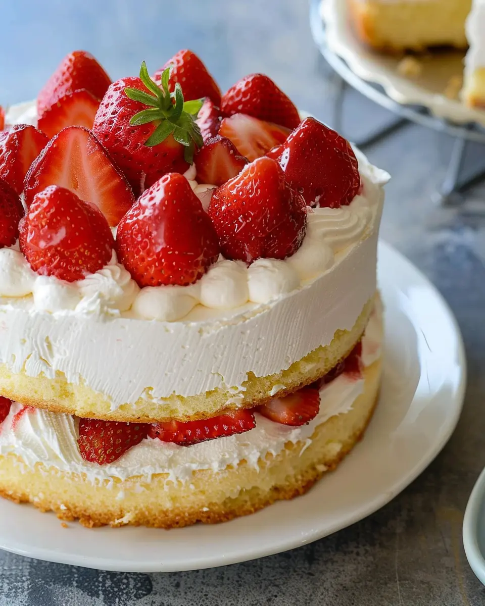 Once baked, your cake will need about 1 hour to cool properly. This step is crucial, as it helps maintain the cake’s structure when you slice it. Afterward, you can spend around 20 minutes assembling your delightful creation with fresh strawberries and whipped cream.