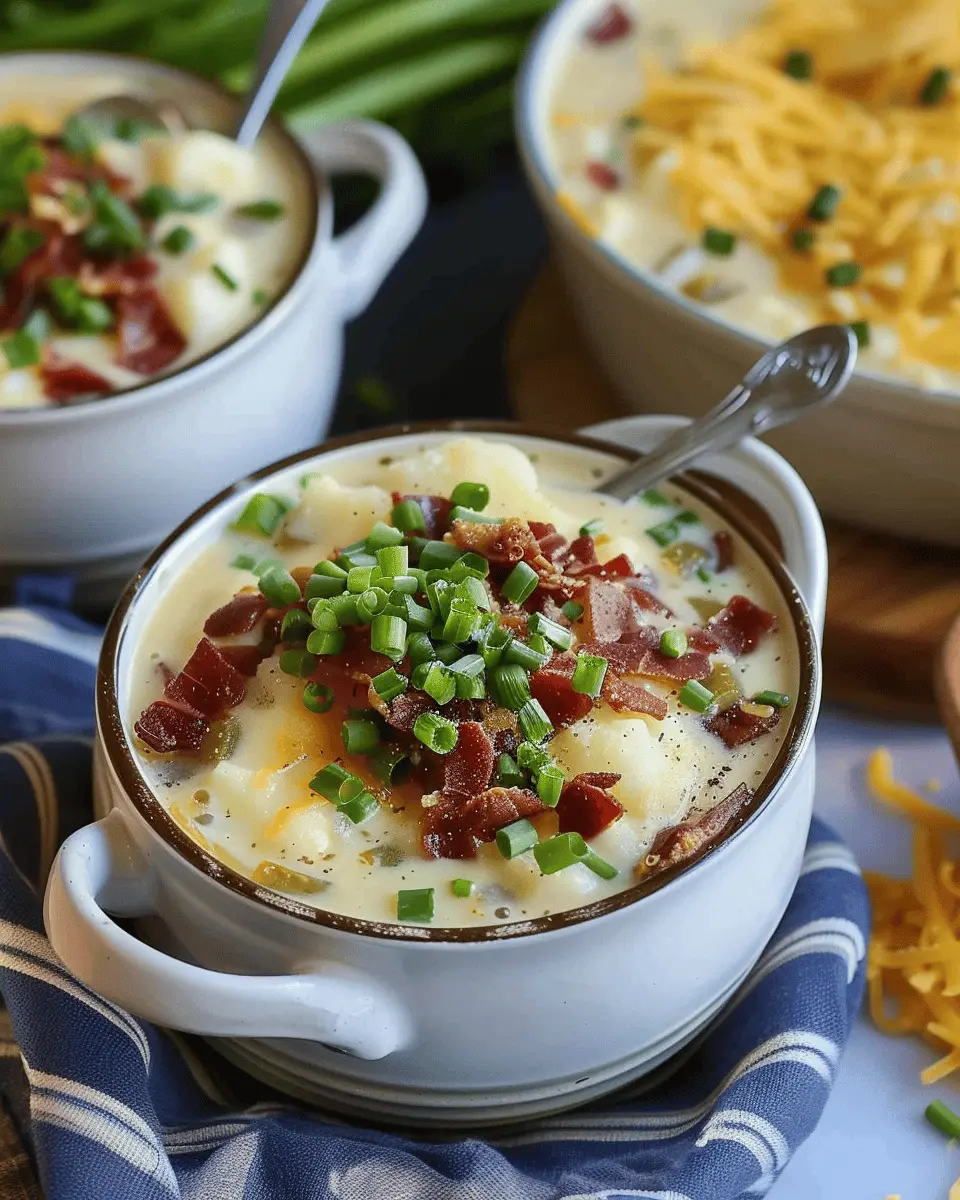 Furthermore, the versatility of loaded baked potato soup makes it perfect for experimenting with flavors. Whether you prefer a sprinkle of chicken ham, a dollop of sour cream, or perhaps a vegan variation with coconut cream, you can easily tailor this dish to suit your taste and dietary preferences. The ingredients can often be found in your pantry, making this an accessible option for spontaneous cooking!