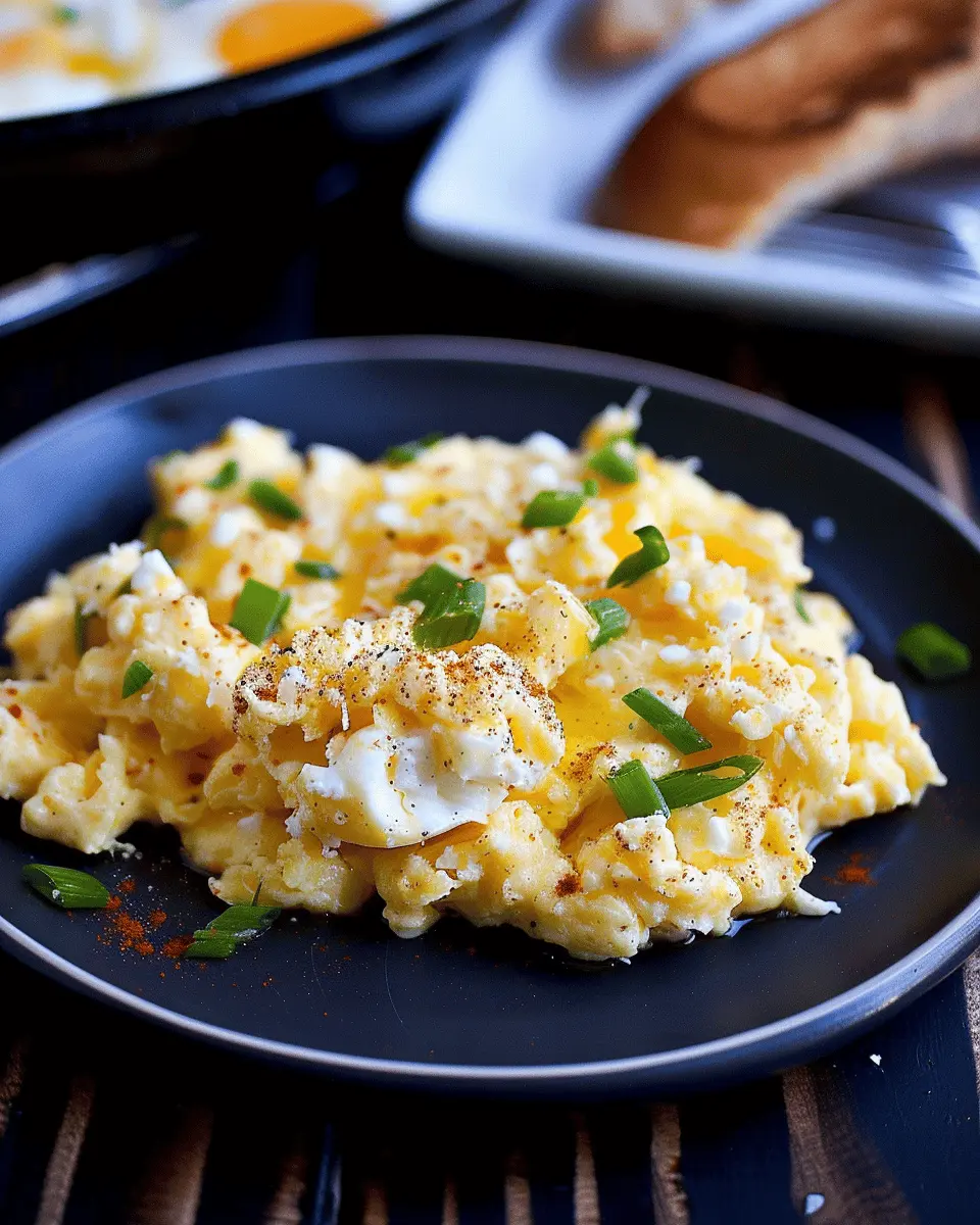 Mix these ingredients gently into your scrambled eggs during the last minute of cooking for a melty, herby delight. This variation is perfect for brunch with friends or a quick weeknight dinner.