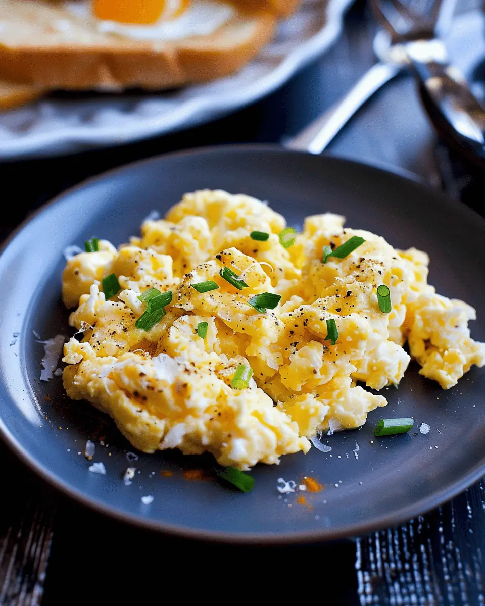 Finally, let’s talk about that creamy boost. Once the eggs are almost set, stir in a dollop of crème fraîche. This delicious addition not only enriches flavor but also adds a velvety finish to your scrambled eggs. As you fold it in, take care to blend it evenly throughout.