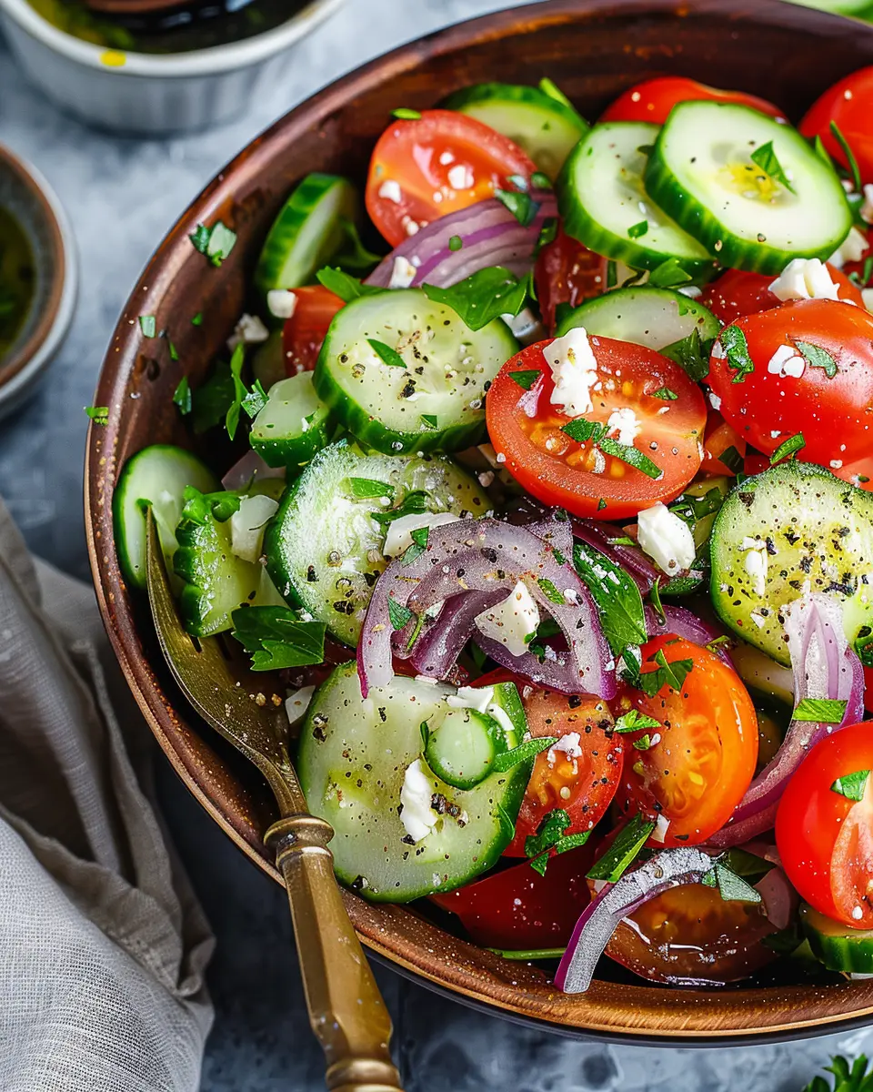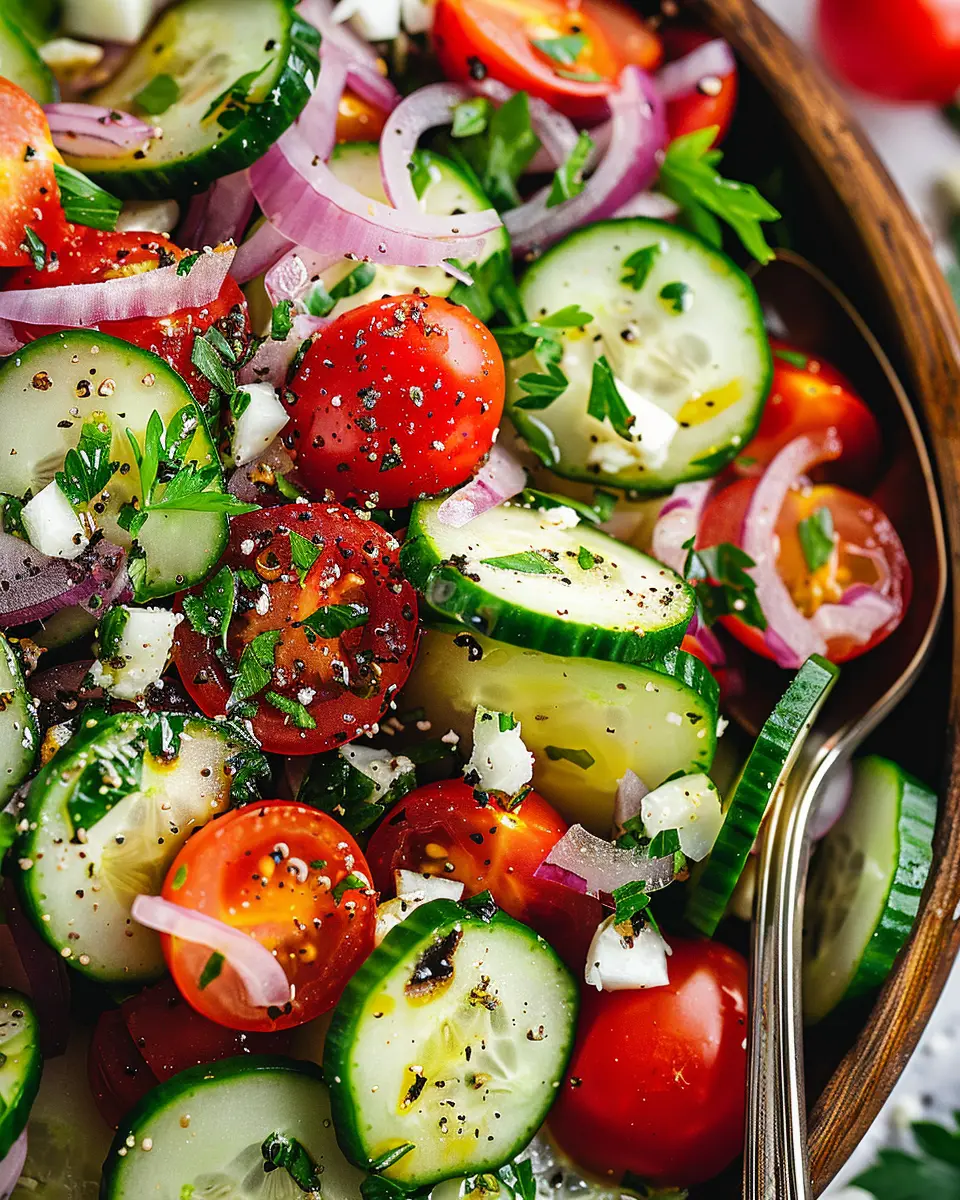 In conclusion, if simplicity, health, and flavor are what you crave, then making this Mediterranean Salad with Cucumber, Tomato, and Onion should be a go-to in your meal-prep rotation. You’ll not only nourish your body but also celebrate the joy of fresh, wholesome food—exactly what every young professional deserves. Get ready to dive into this delightful recipe!