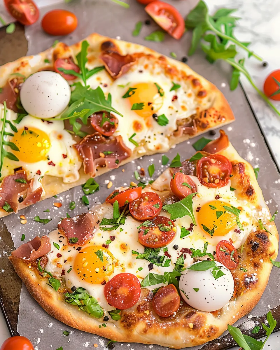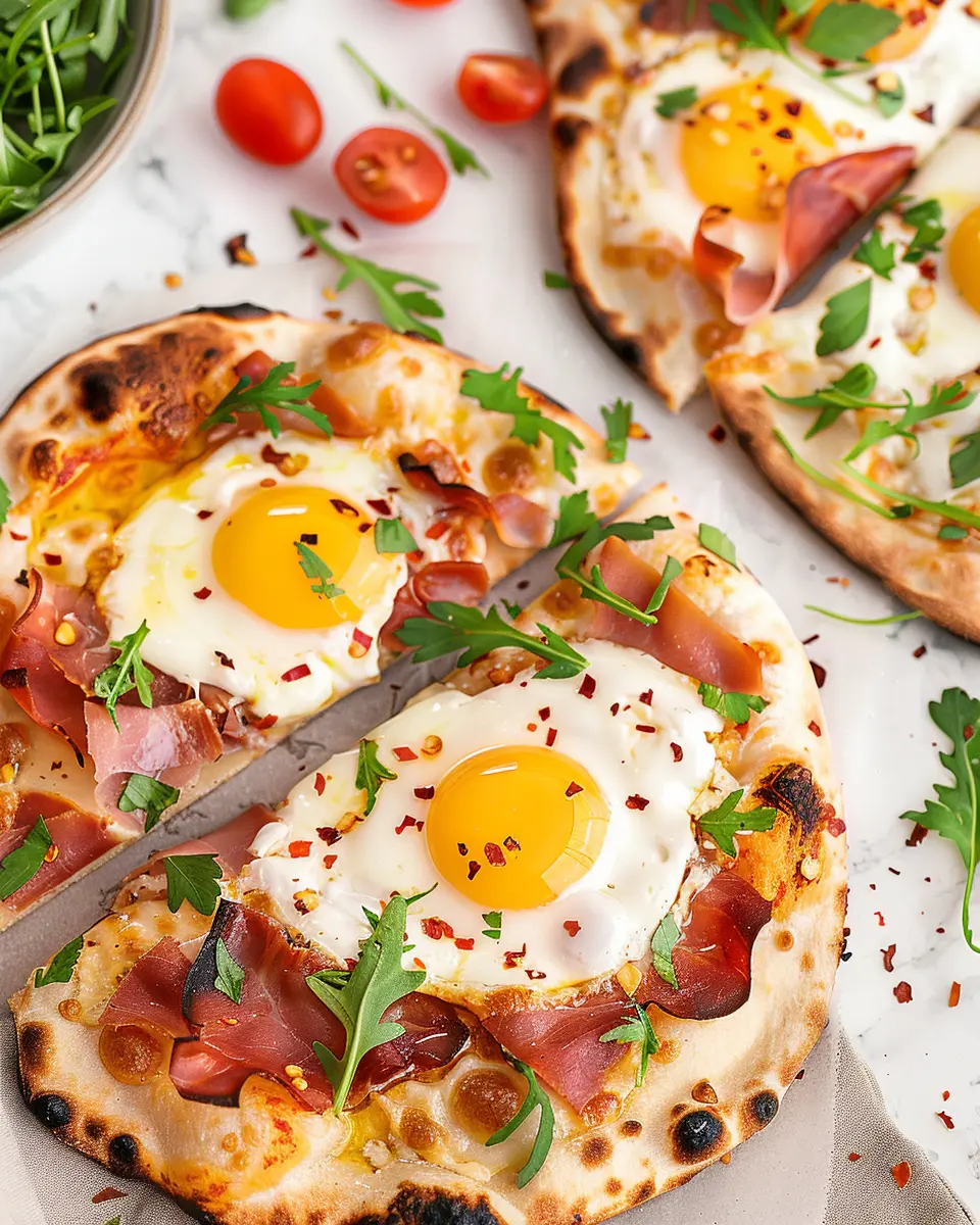 If you’re aiming for a fresh and colorful start to your day, a veggie-packed Naan Breakfast Pizza is an excellent choice. Think of vibrant bell peppers, fresh spinach, juicy tomatoes, and zesty red onions all piled high on that warm naan base. Add a sprinkle of feta cheese for a tangy kick. You can also toss in some avocado slices for a creamy texture that balances the crunch of the veggies. This combination is not just delicious; it’s a great way to squeeze in those essential nutrients first thing in the morning! You can find more ideas for wholesome breakfast toppings at Healthline.