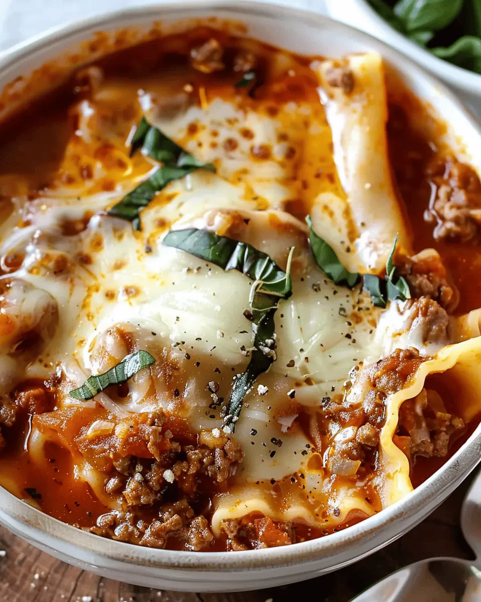 An easy and comforting One Pot Lasagna Soup perfect for busy nights, combining all the flavors of traditional lasagna in a quick and simple recipe.