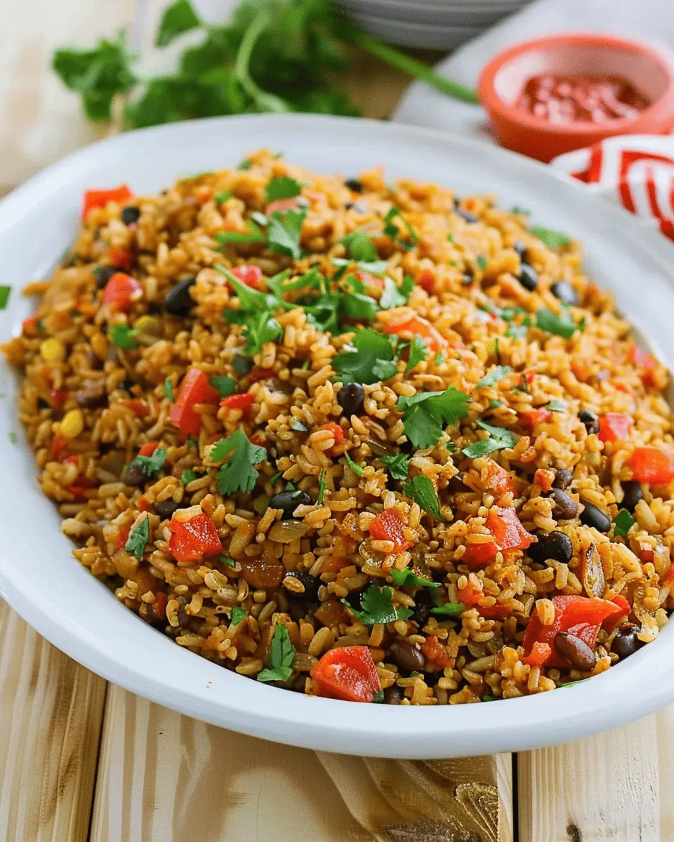 Once everything is cooked to perfection, let the pot sit off the heat for about 5 minutes. This helps with the final texture. Fluff the rice with a fork and add a splash of lime juice for a zesty finish. To take your dish to the next level, top it off with fresh cilantro and diced avocados, or even some crumbled feta for a twist. Not only does this presentation look appealing, but it also adds a refreshing burst of flavor!